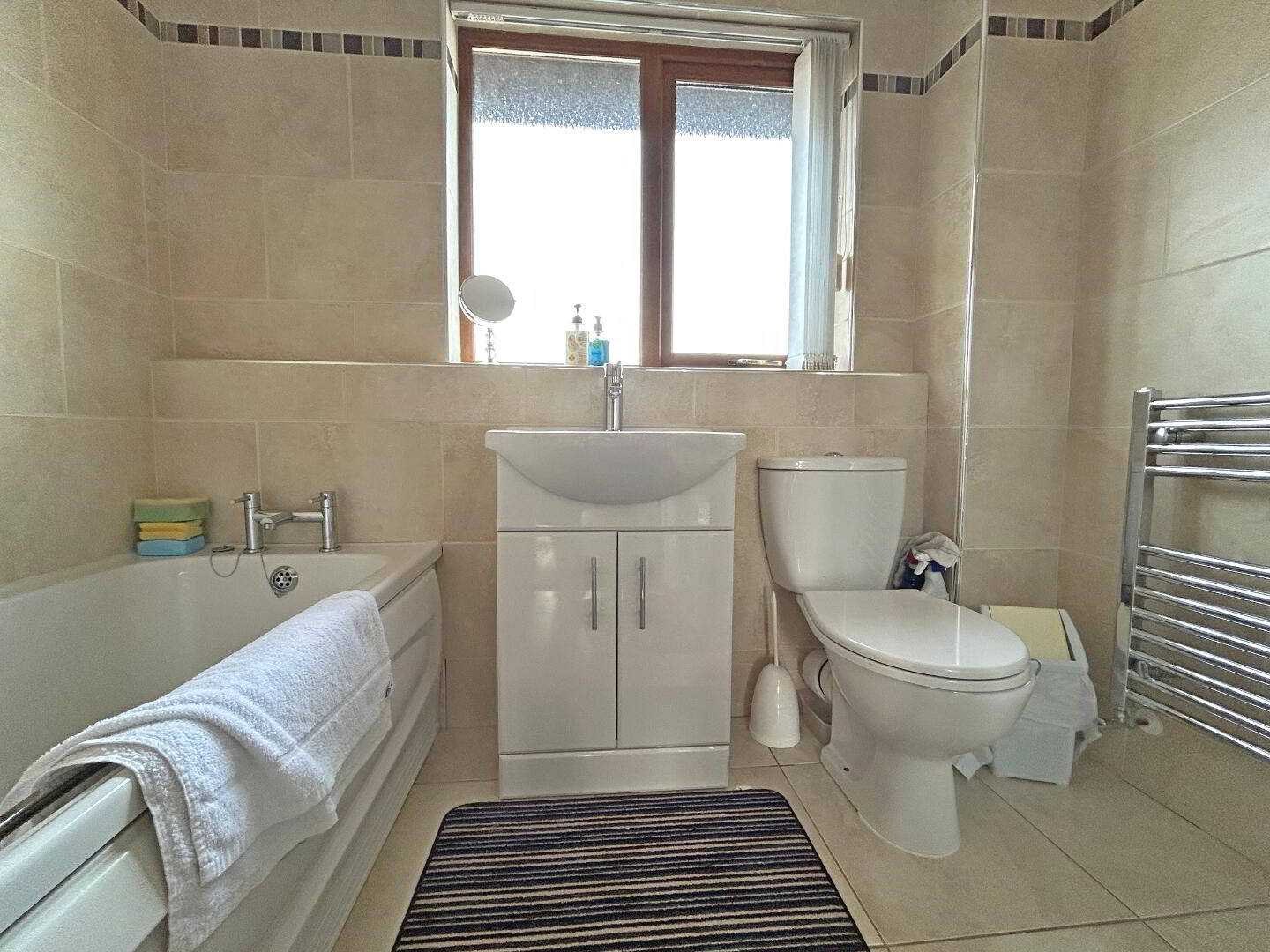 Fully tiled walls and floor