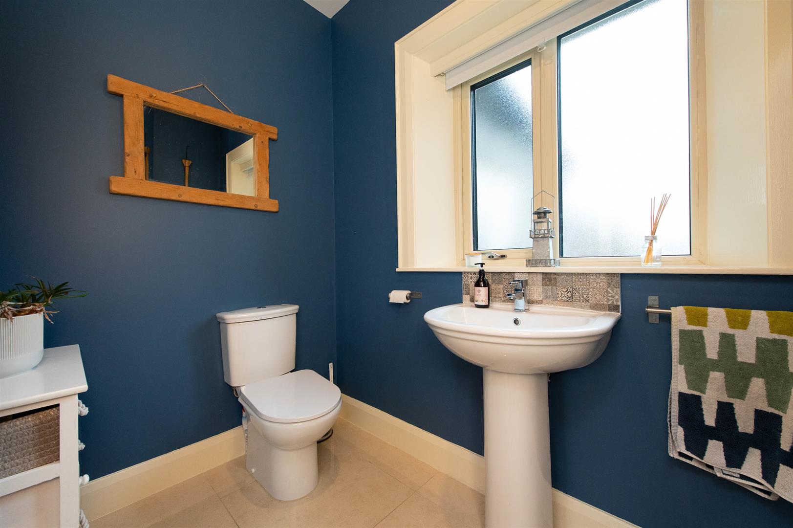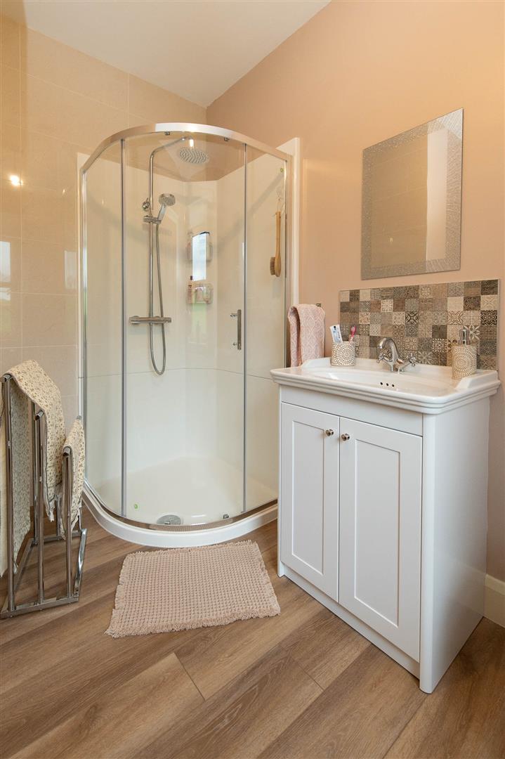Stunning solid oak staircase with carpet laid on stairs and landing areas. Landing with dual aspect windows allowing plenty of natural lighting onto the first floor. Bedroom one with carpet laid and front facing aspect, double wardrobe and ensuite with ensuite comprising corner shower cubicle, sink with vanity and W.C. Bedroom two accessed via fantastic dressing room area with laminate flooring and a further built in wardrobe within bedroom area. Bedroom three with side view aspect, built in wardrobe & carpet laid with the added benefit of the jack & jill ensuite accessed from bedroom three & four. Bedroom four with front facing aspect and laminate flooring. Jack & jill ensuite comprising tiled floor, part tiled walls, shower cubicle, wash hand basin with vanity and W.C. Family shower room again with lovely tiled flooring, walk in shower, sink with vanity, W.C & heated towel rail.