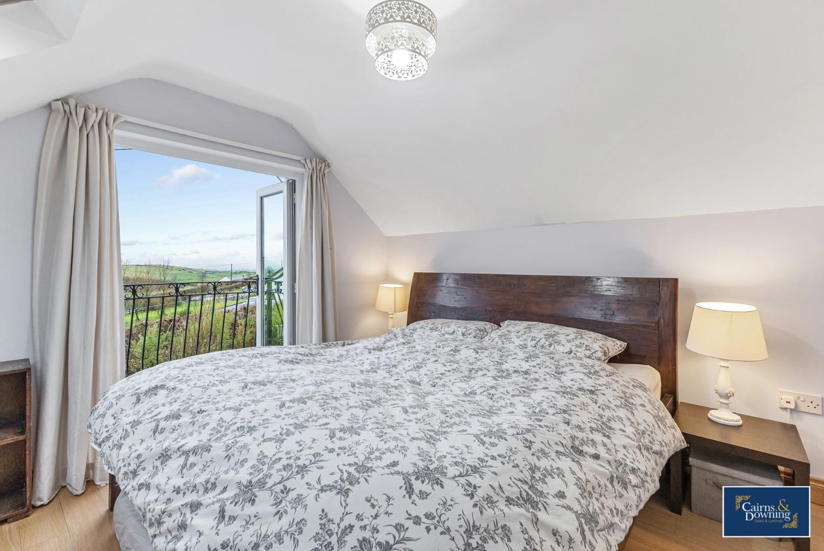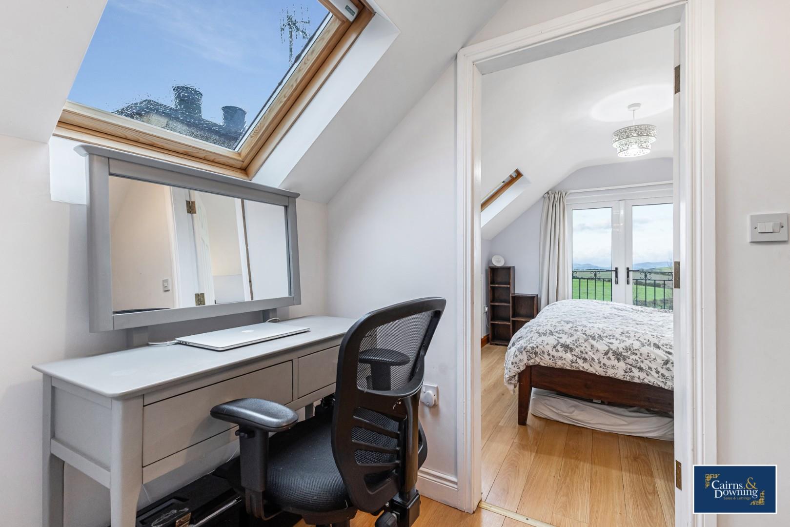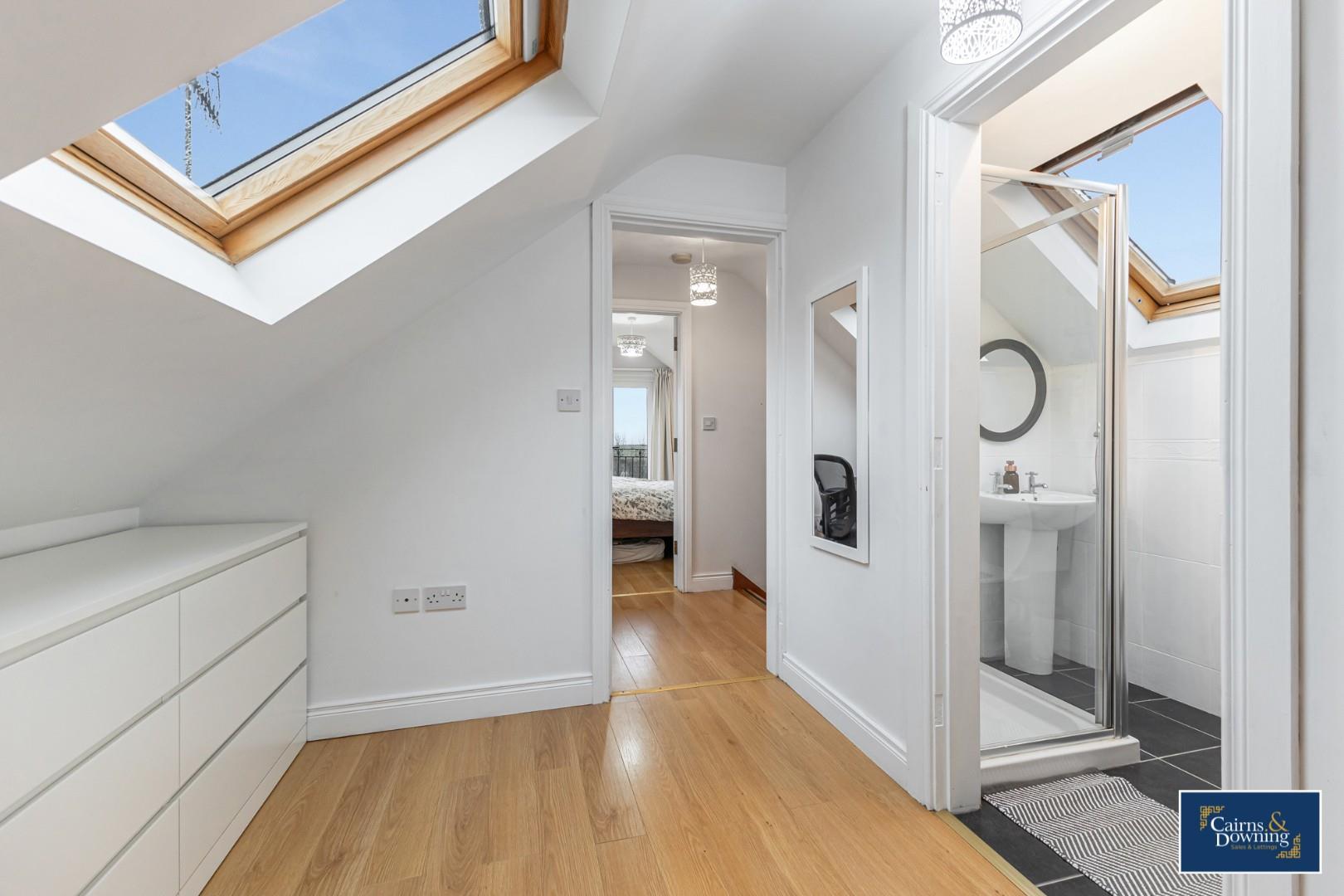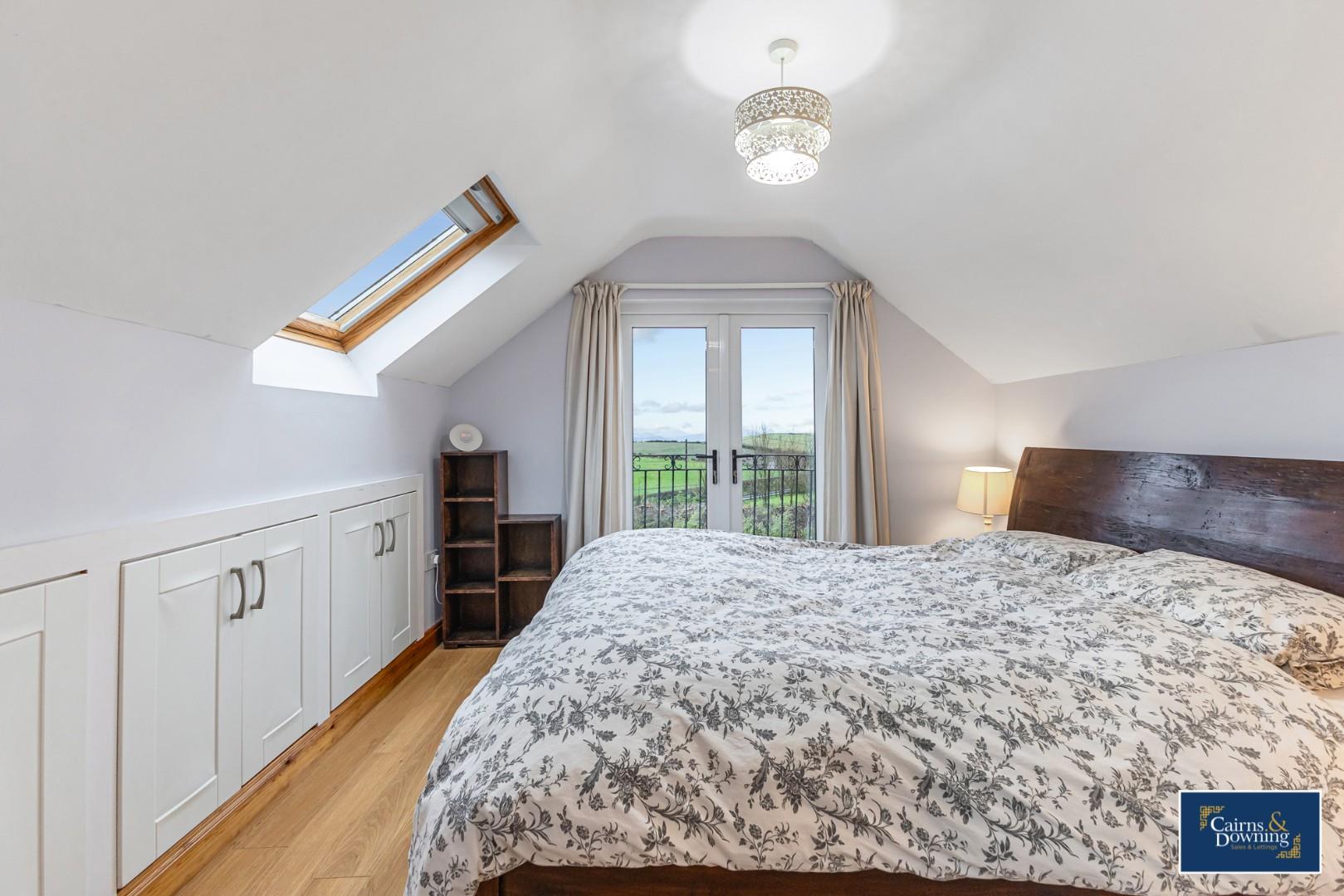 Velux window at the side & Balcony Doors at the front. Storage cupboards in the eves. Wood flooring