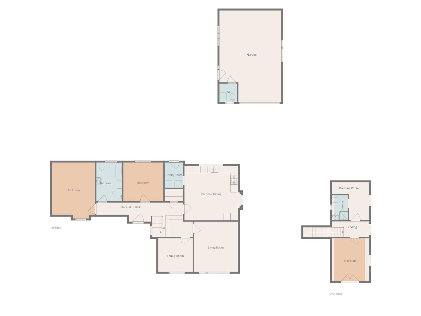 Master bedroom with en-suite shower room and adjacent dressing room