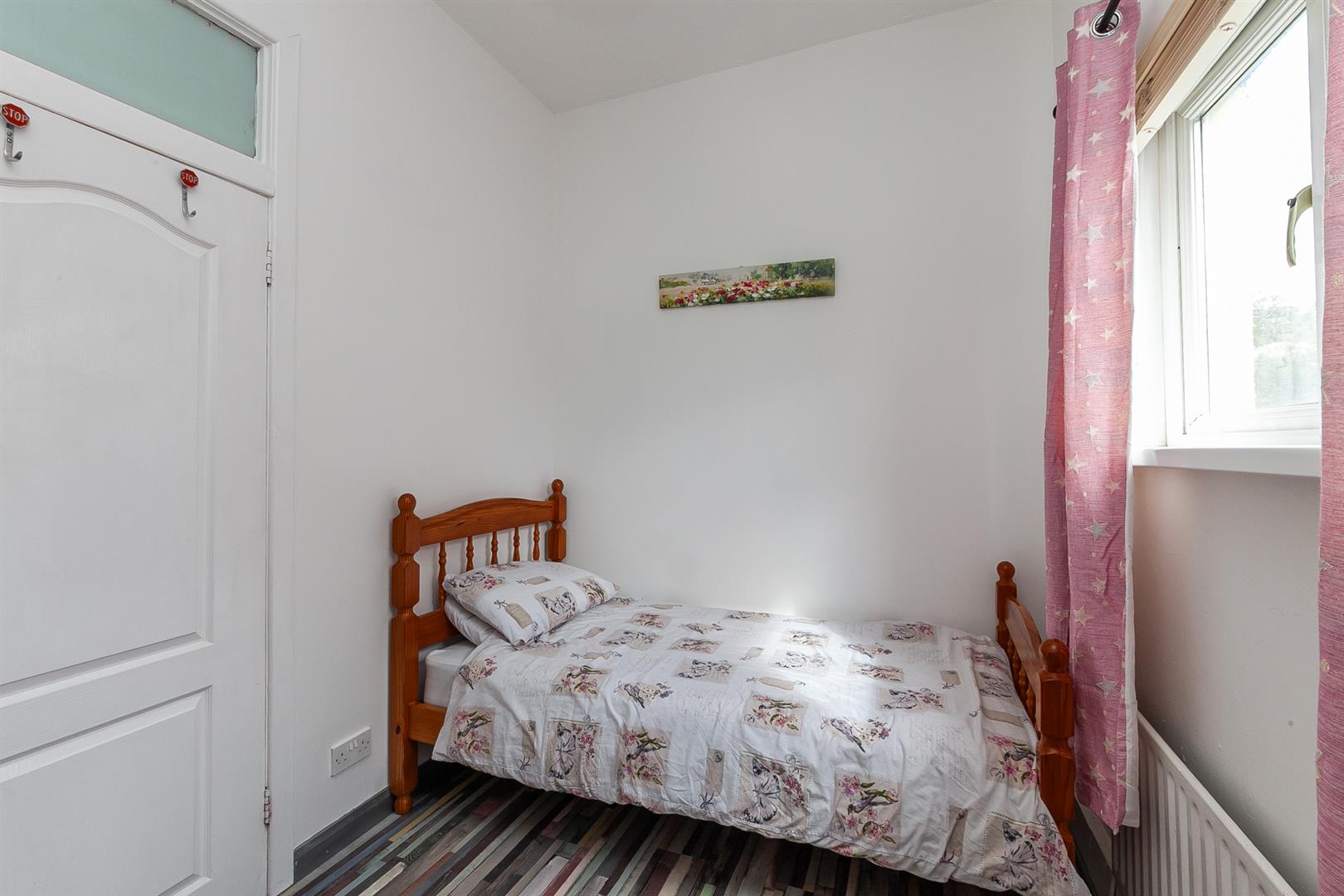 Wood laminate floor, concealed gas boiler, double panelled radiator.