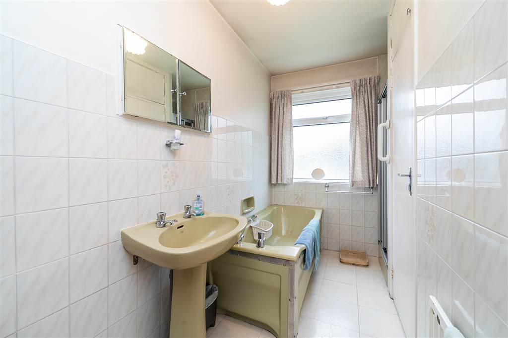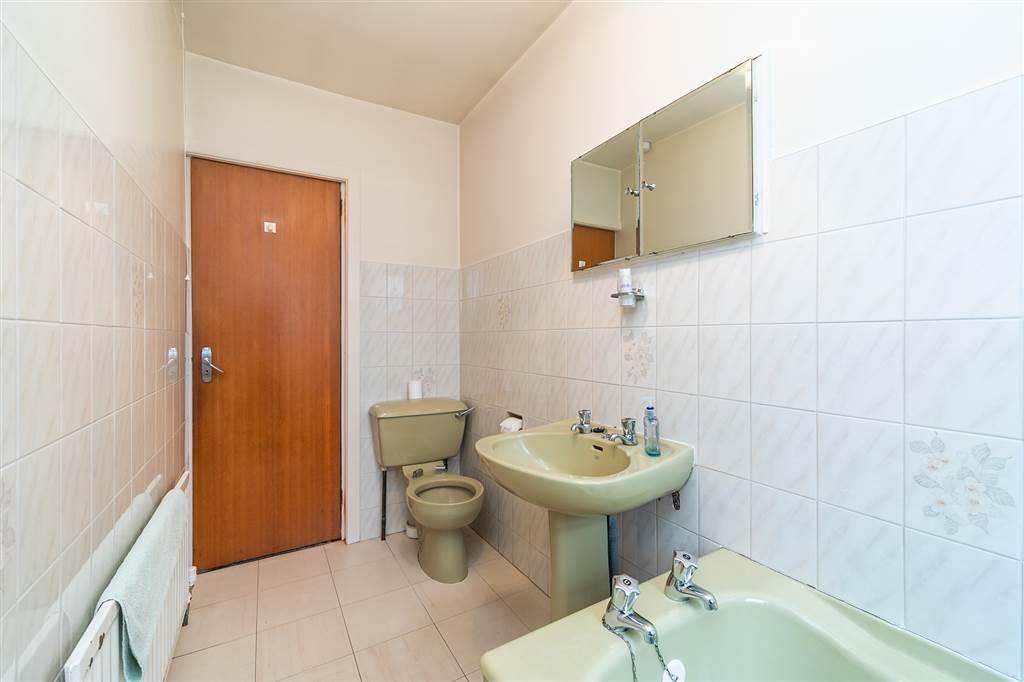 4 piece suite with panel bath, tiled shower cubilcle, pedestal wash hand basin and low flush wc.part tiles walls, ceramic tiled floor.