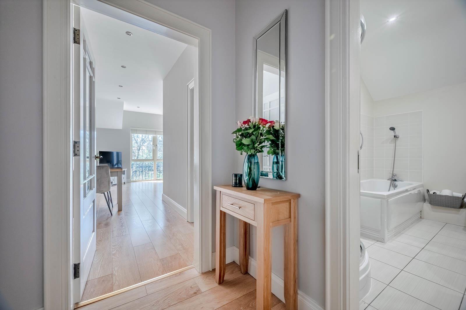 Measurements at widest points. Fantastic mature private outlook, low voltage recessed spotlighting, wooden laminate effect flooring.