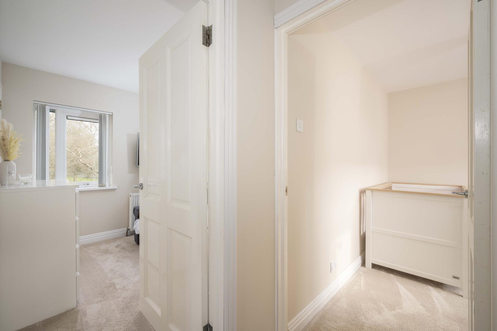 Outlook to front, built-in wardrobes and built-in storage cupboard with access to Ideal gas boiler.