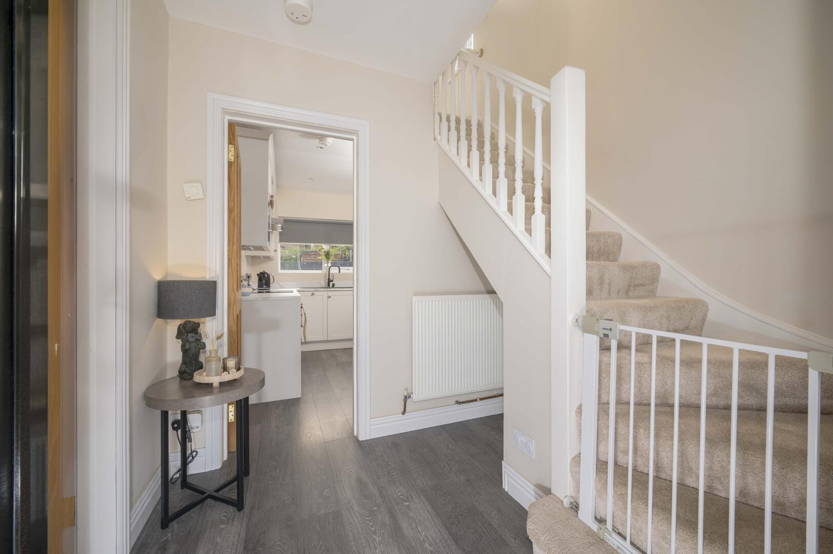 The property comprises of a spacious reception hall with under stairs storage space, an open plan living and dining room and a modern fitted kitchen with an excellent range of high- and low-level units. To the first floor there are two well-proportioned bedrooms and a modern fitted family bathroom with white suite.