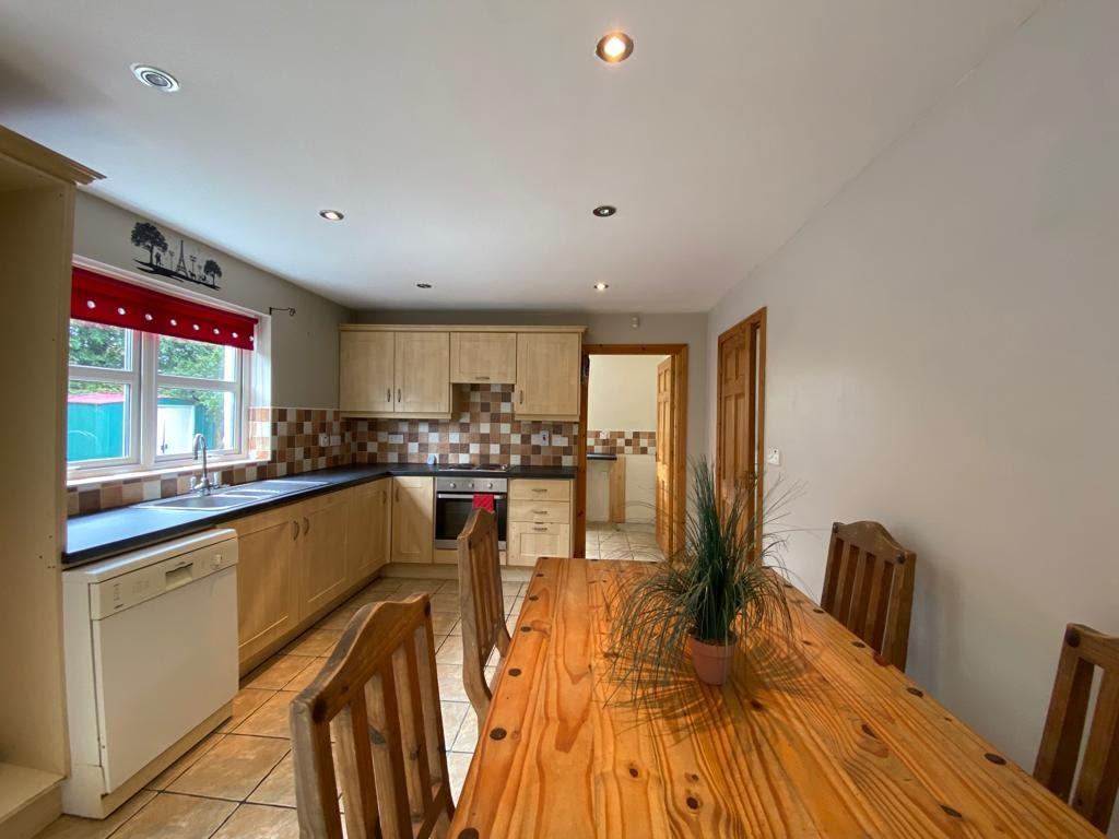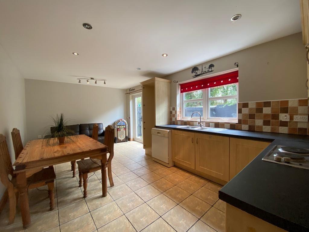 Having eye and low level units; hob; under oven; 1 1/2 bowl stainless steel sink unit with mixer taps; plumbed for automatic dishwasher; space for fridge / freezer; tiling between units; tiled floor; ample dining space with french doors to rear.