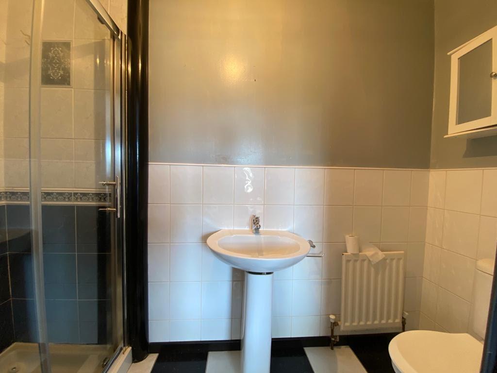 Comprising fully tiled walk in shower; wash hand basin and WC; half tiled walls; tiled floor.