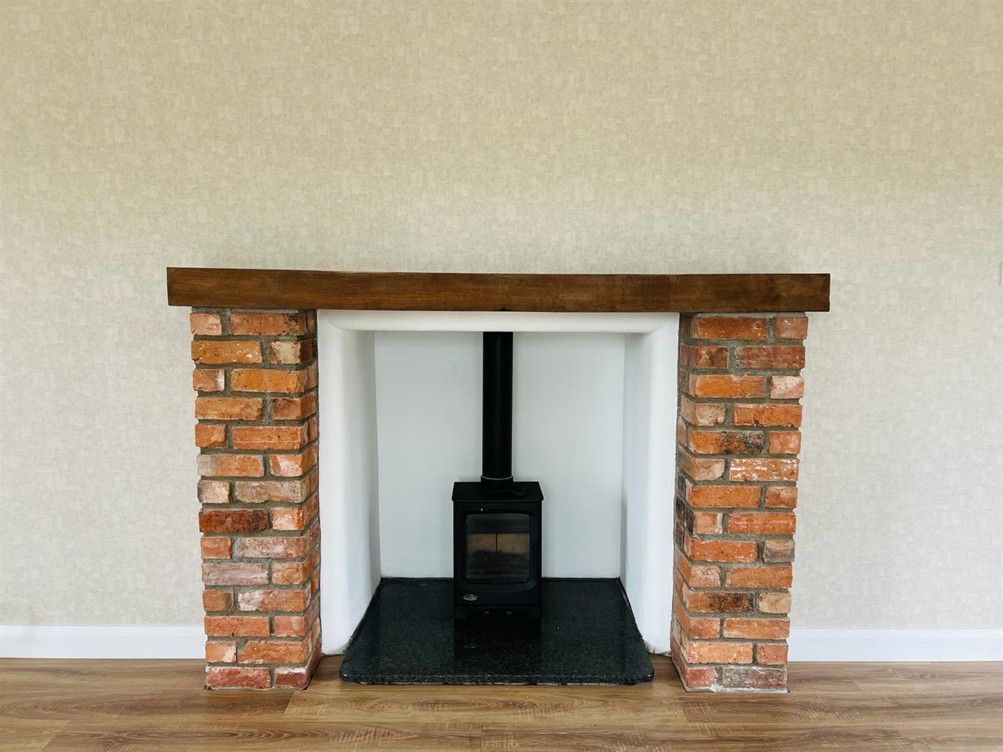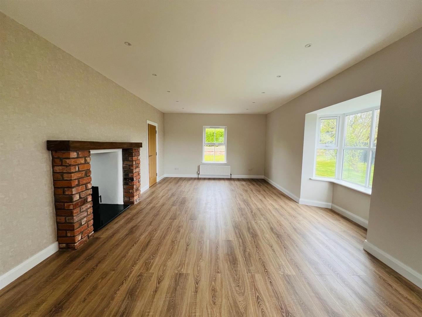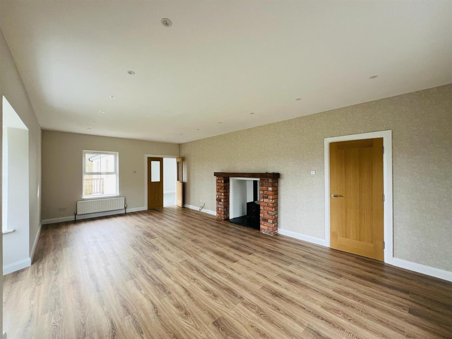 Having multi fuel stove sey on garnite hearth with brock surround, recessed lighting, laminated wooden floor, dual aspect, double doors leading to Kitchen.