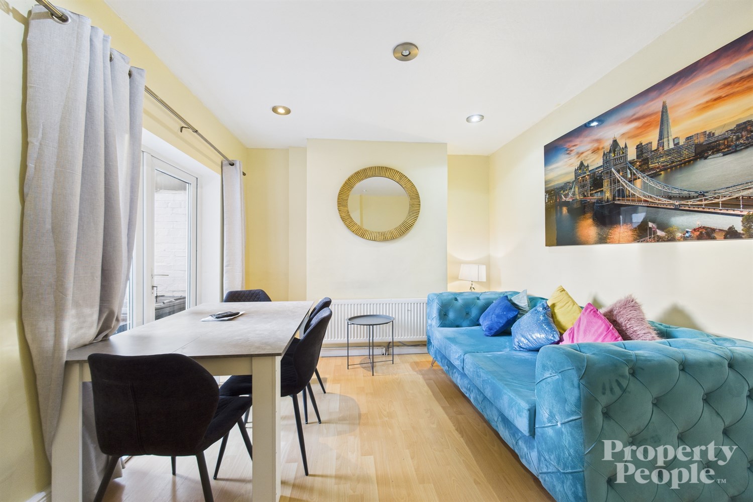 Separate dining room with spotlights, laminate wooden floor and uPVC double doors leading out to your enclosed rear yard.