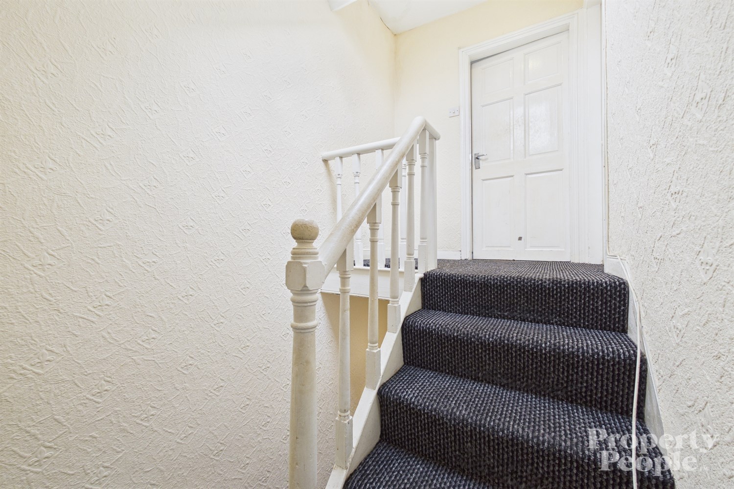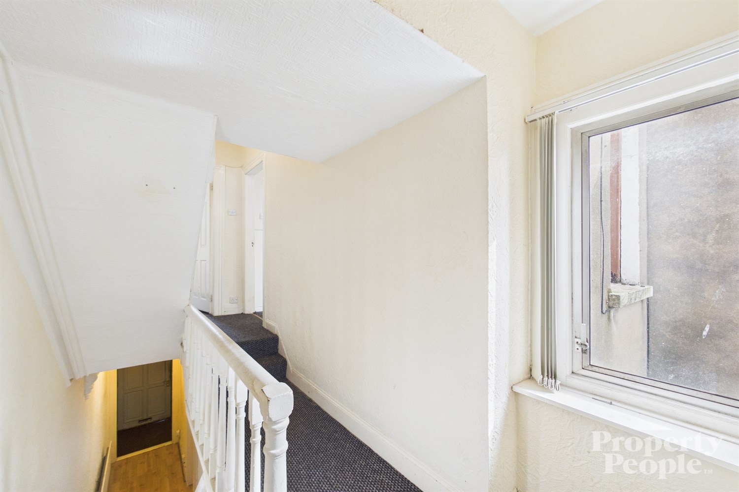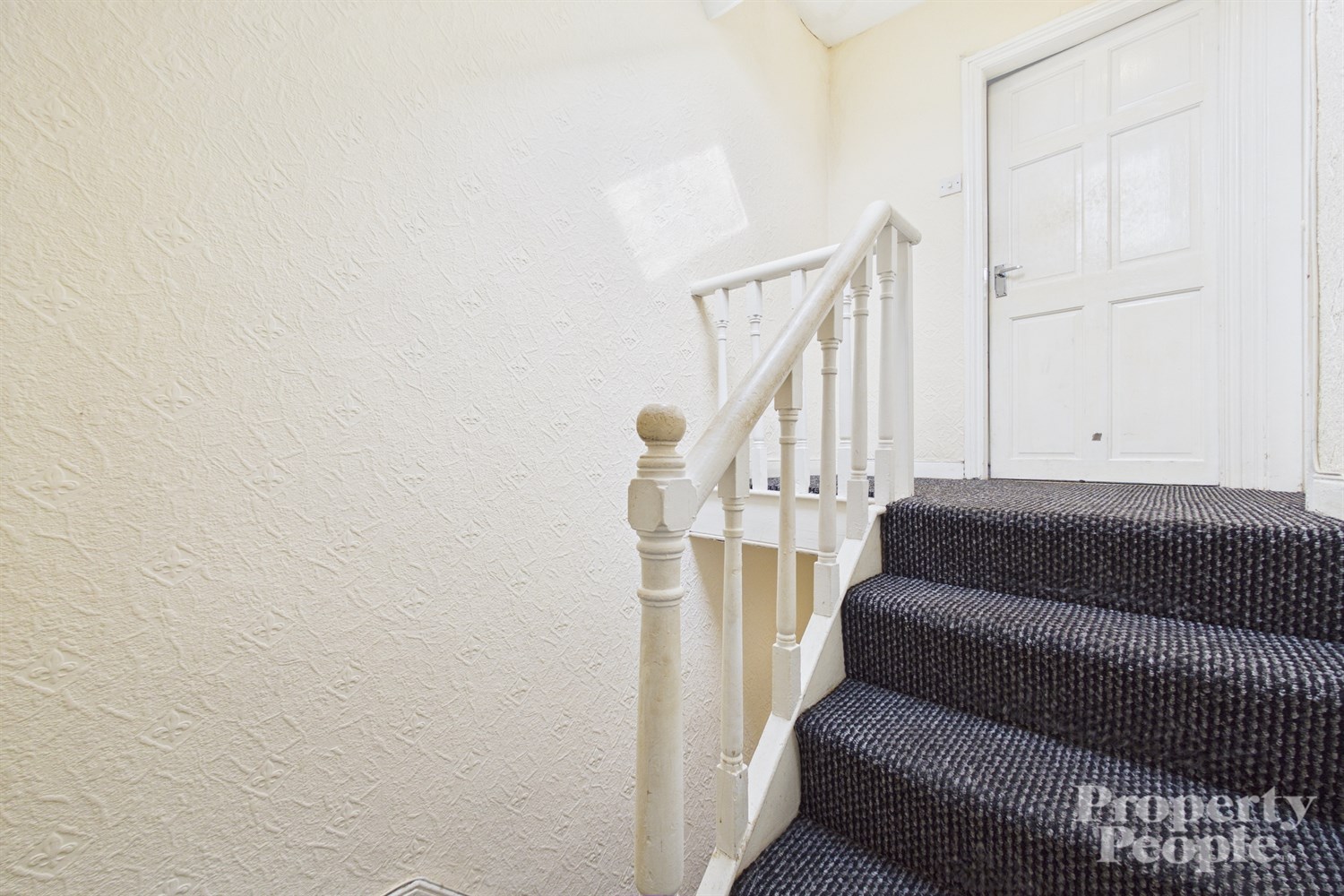 Carpeted stairs to 1st floor landing providing access to upper rooms ...