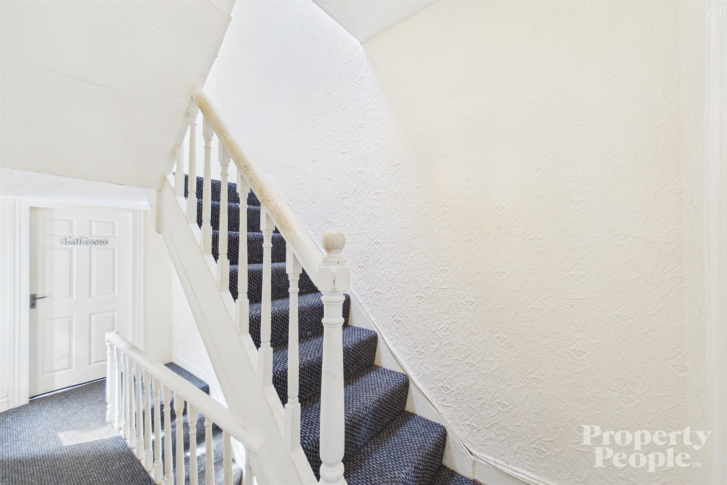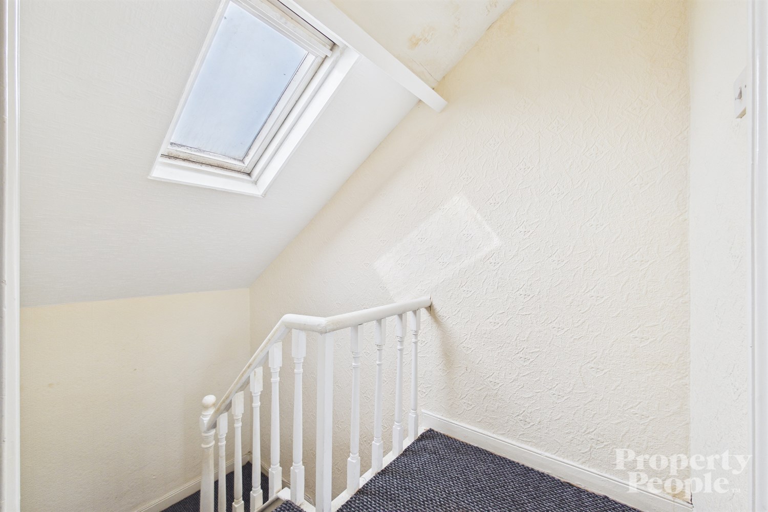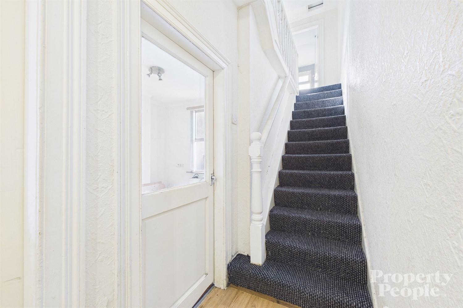 Carpeted stairs to 1st floor landing providing access to upper rooms ...