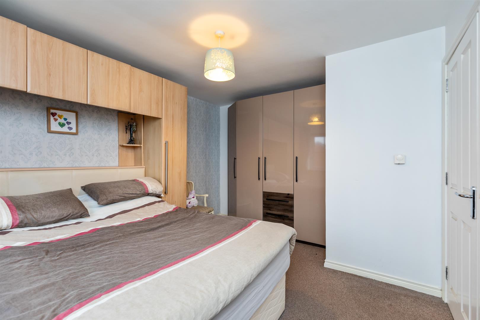 Recessed spotlighting, access to roofspace, hot press with shelving.