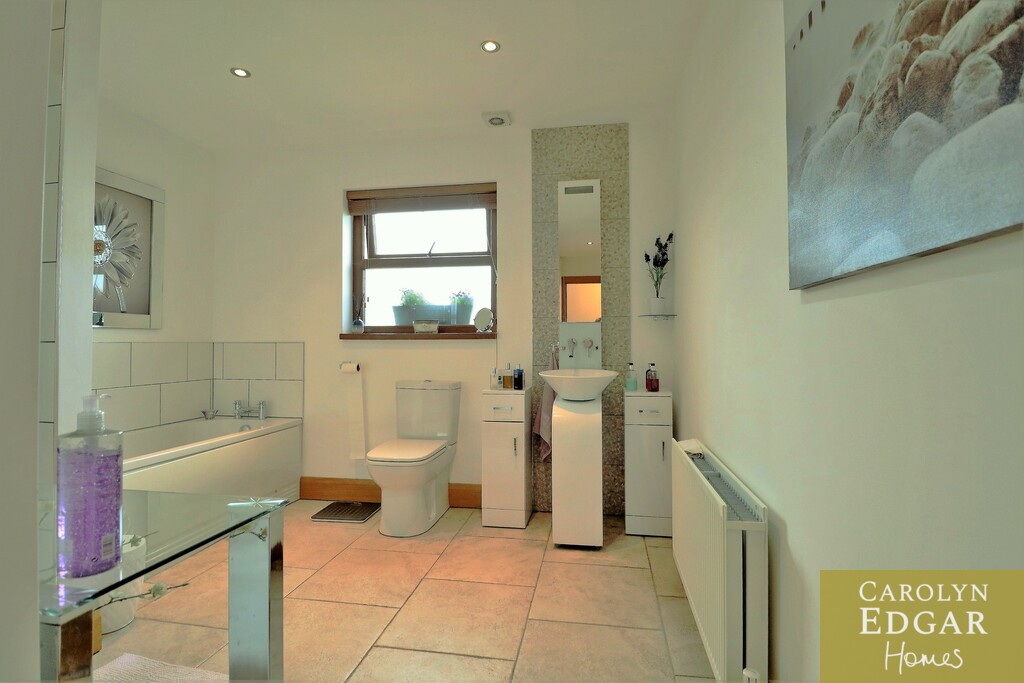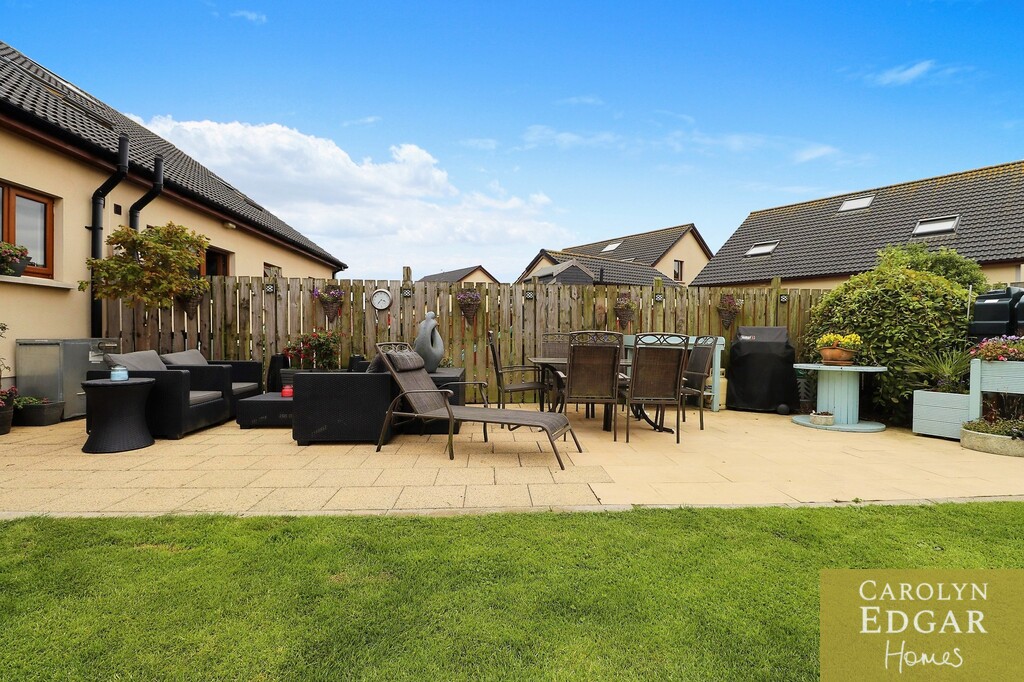 Set on an extensive, prime corner site this perfectly presented and spacious property offers a wealth of spacious and versatile living accommodation throughout and with the adaptability of bedrooms and living space will suit many a family's growing needs. Set in the popular Castle Meadow development the property is only short distance to the stunning shoreline and beaches as well as the village with its many amenities and golf club. Downstairs comprises of bright entrance hallway, large lounge with feature multi fuel burning stove, modern fitted kitchen with dining area overlooking the beautifully maintained gardens, utility room, two double bedrooms, one currently used as an office and large family bathroom. Upstairs are three further double bedrooms, master with dressing room, excellent walk-in storage room and separate modern shower room. Outside the property is set on an extensive plot with large driveway to the side providing ample car parking for several cars, with ramp access to the front door and expansive gardens laid in lawn to the front. To the rear of the property are large private enclosed gardens laid in lawn with raised beds, and paved patio area giving this great appeal to those looking to enjoy the pleasures of a quieter pace of life in an excellent location.
