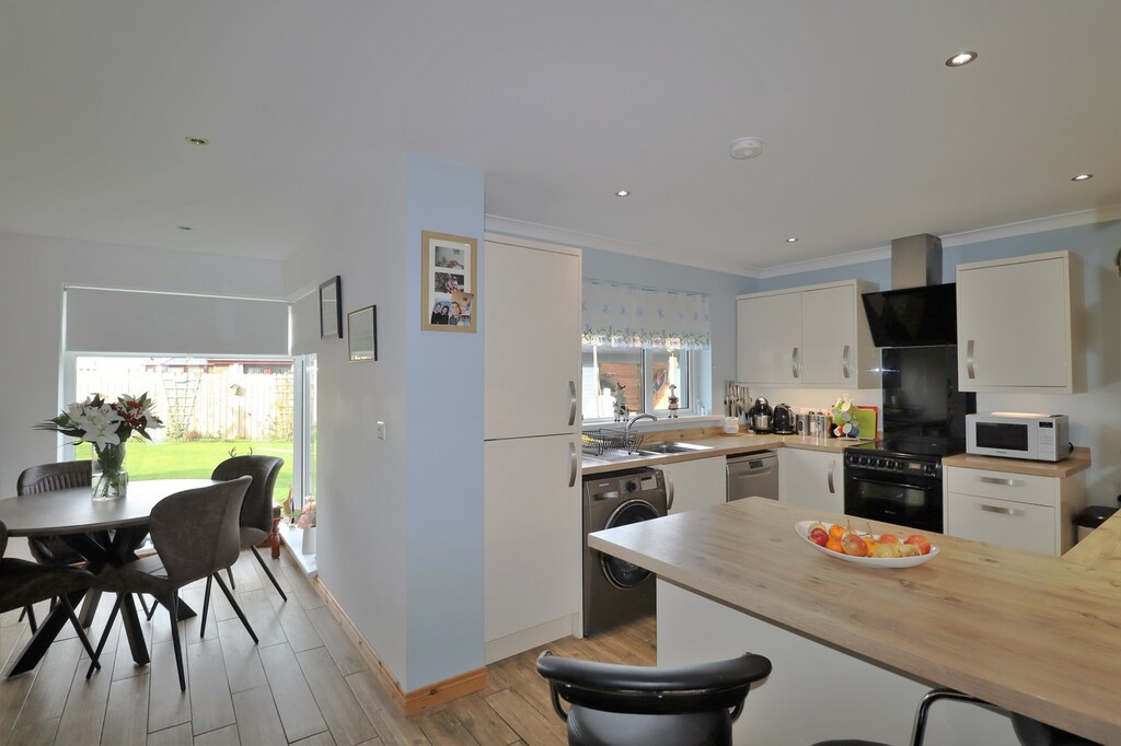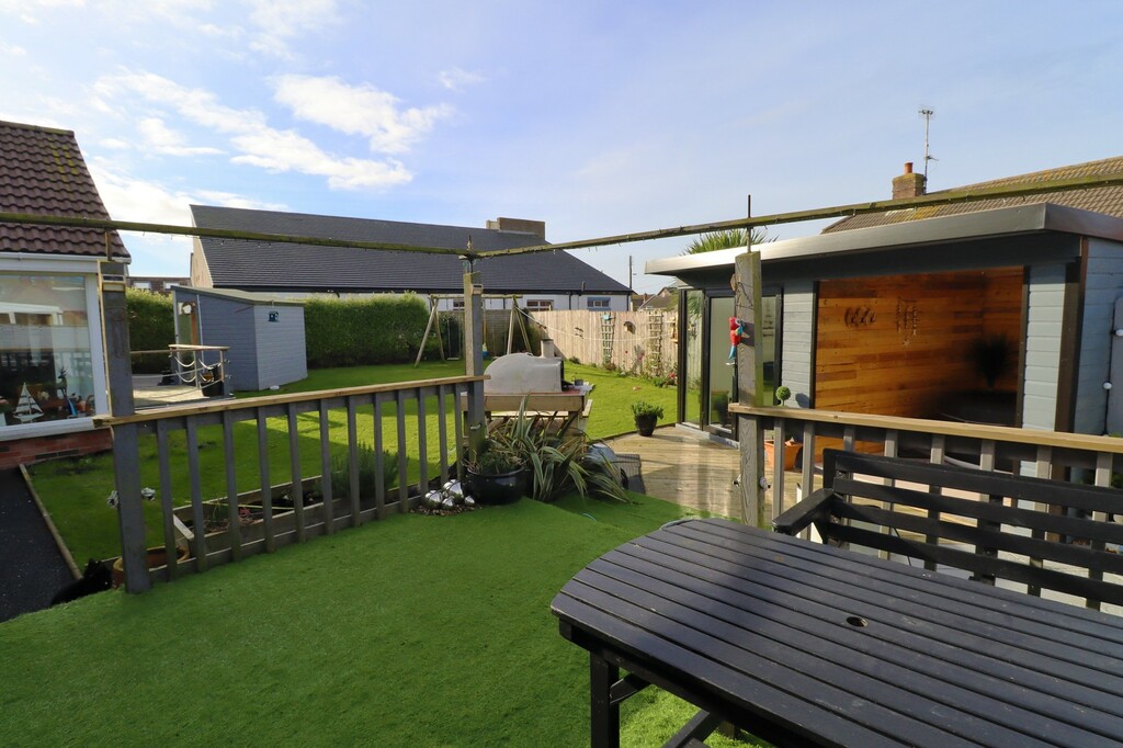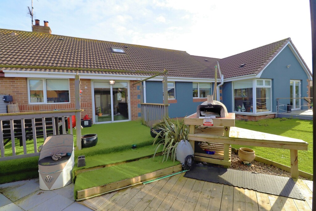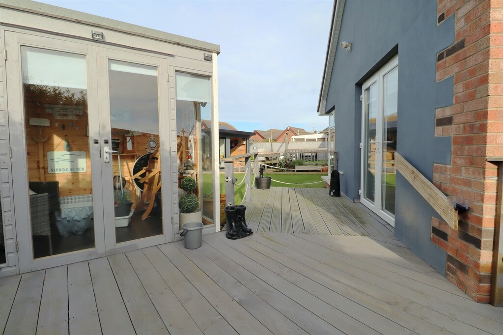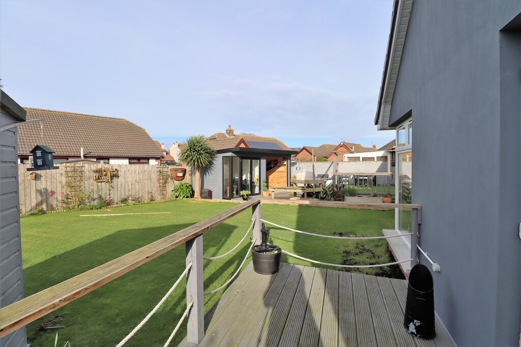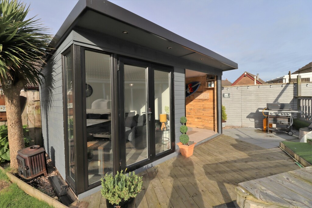 This beautifully stylish and versatile home will not disappoint, immaculately presented throughout this modern extended property provides superb spacious and contemporary living accommodation throughout. The property is set in peaceful cul de sac but still conveniently located to many local amenities and shops as well many delightful coastal walks and shoreline. Meticulously updated and extended by the current owners the property will have great appeal for those looking for that extra living space for necessities of a modern household with a separate fully contained one bedroom annex which provides perfect living accounting for elderly relatives, independent teenager or the ever changes needs of a growing family The main property comprises of bright entrance hallway, large lounge with feature open fireplace, open plan modern fitted kitchen with casual dining area and sliding doors out to the raised sun terrace, double bedroom and downstairs bathroom. Upstairs there are three beautifully presented double bedrooms and family shower room. The annex comprises of separate entrance hallway, spacious and bright double bedroom, contemporary shower room and open plan modern fitted kitchen open to dining area and contemporary lounge with wood burning stove with double doors leading out to decked sun terrace and summerhouse. Outside the property is set on an corner site with tarmacked gated driveway providing secure parking for several cars and large garage. To the rear are fabulous private enclosed sunny rear gardens laid in lawn, with every outdoor facility imaginable including summer house, garden room, enclosed hot tub and raised patio area with pizza oven taking dining alfresco to another level.