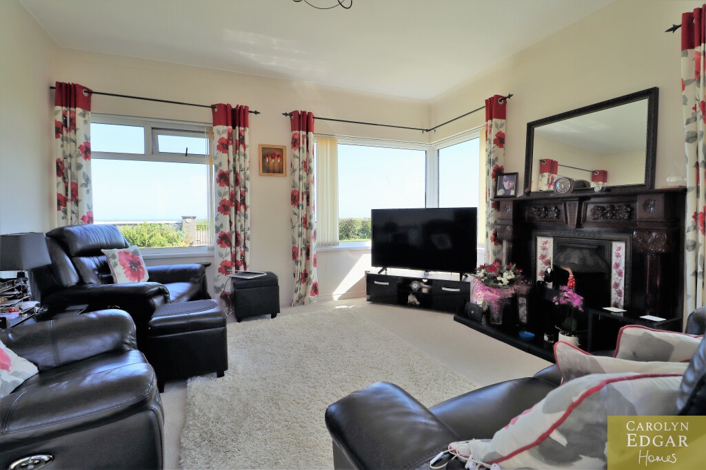 Spacious Lounge with Sea views and French Doors to Patio Area