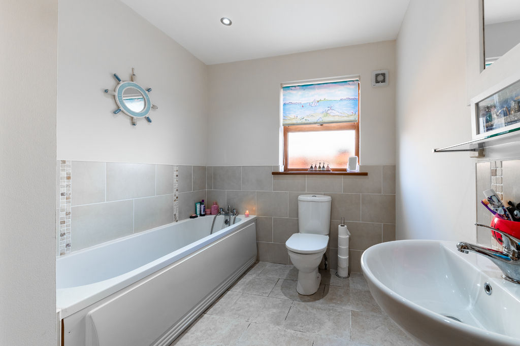 This immaculately presented and spacious property offers a wealth of versatile and contemporary accommodation thought out and will appeal to those looking for flexible living space with bedrooms and bathrooms split over the two levels. With the extra benefit of a fully equipped salon will give added appeal to those either looking to work from the convenience of their own home or could easily be converted as an annexe for elderly relatives or older children and teenagers. Set in the popular Castle Meadow development the property is set in a convenient location close to the village with its many amenities, beach, and golf club. Downstairs comprises of bright entrance hallway, large lounge with feature open fireplace, 2nd family room/sitting room or 5th bedroom, spacious modern kitchen with casual dining area and fourth double bedroom overlooking the rear gardens. The property also benefits from contemporary large downstairs bathroom and utility room. Upstairs are three further double bedrooms, master with walk-in in dressing room and spacious modern shower room. Outside the property has gardens laid in lawn to the front and large driveway to the side. To the rear of the property are large private enclosed gardens laid in lawn.. the perfect space enjoy those long-awaited summer evenings!