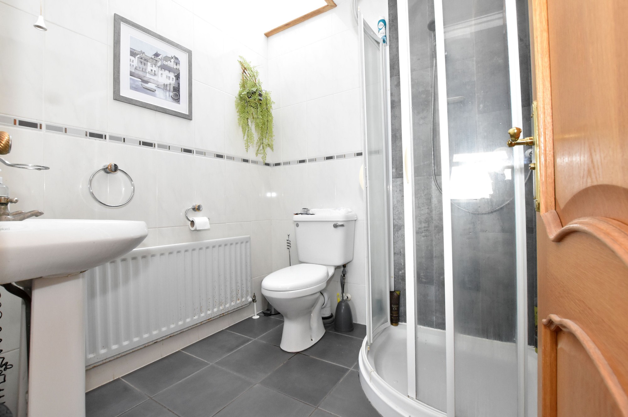 Upstairs, you’ll find three well-proportioned bedrooms, two of which enjoy those all-important sea views, and two benefiting from ensuite facilities. A family bathroom completes the first floor, while a convenient ground floor cloak suite adds practicality to everyday life.