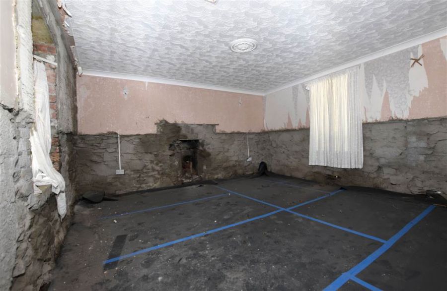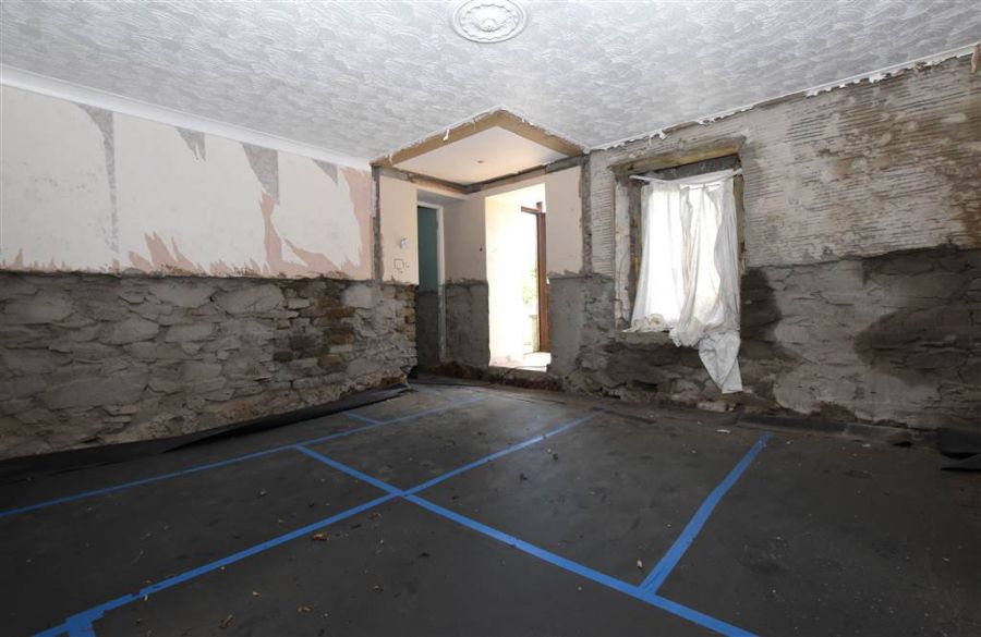 Plaster has been stripped to 1 meter high downstairs to allow for electric damp course