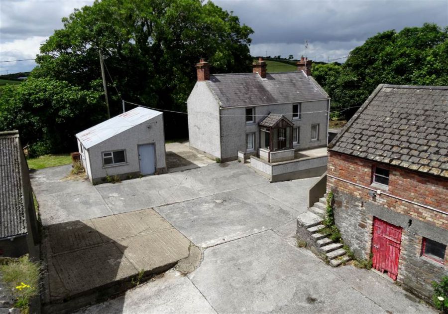 This detached farm house just outside the coastal village of Cloughey has a range of quality and character filled outbuildings. It is set on c. 3.82 acres including agricultural land currently used for grazing. It also includes the remains of 'Castle Boy' Church and Castle. This would appeal to any equestrian interest, a hobby farmer or a family needing that extra space. The house itself has commenced renovation works with much of the groundwork completed. The potential to have a good sized family home with plenty of space is here. Outside the variety of outbuildings could be used for various interests such as storage, renovated for Airbnb or housing animals.It is set on an attractive main road location around half a mile from Cloughey.