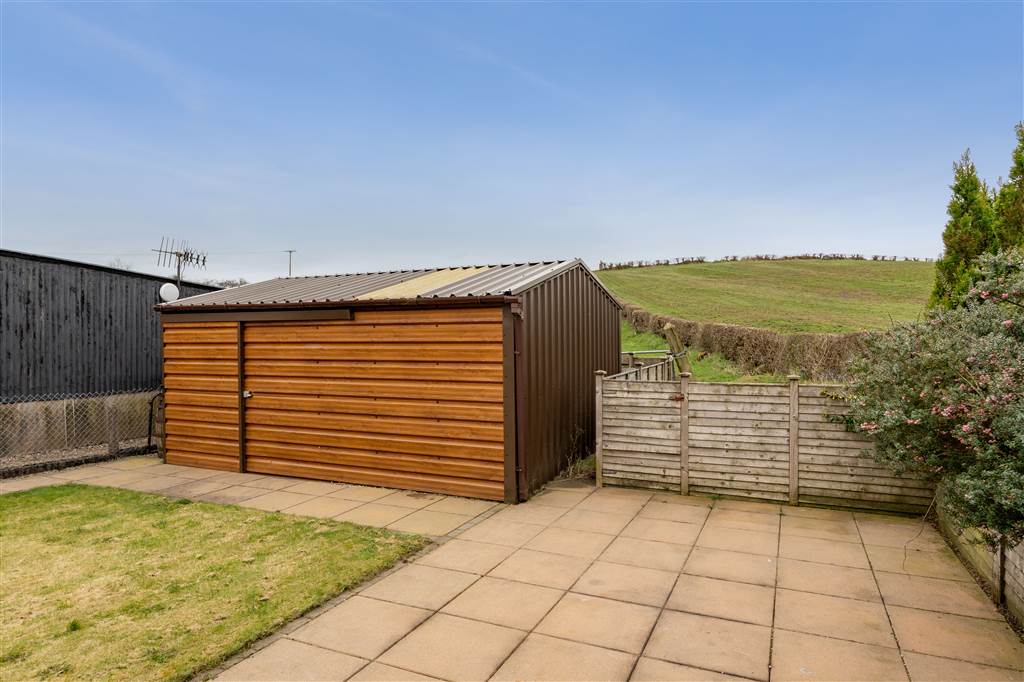 With tarmac drive at side of property for off-street parking. Decorative pebbled area to front. Spacious area to rear with garden in lawn. Paved patio area to rear. Elevated wooden decking with pergola over. Boiler house with power, light and water. Steeltech shed with power, light and anti-drip insulation. Overlooking green fields. Outside light.