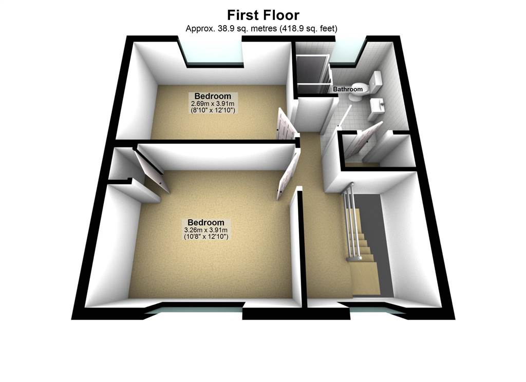 BEDROOM (2): 12' 10" X 8' 10" (3.91m X 2.69m)