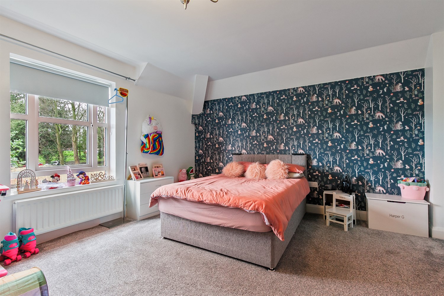 Carpeted floor, double panelled radiator.