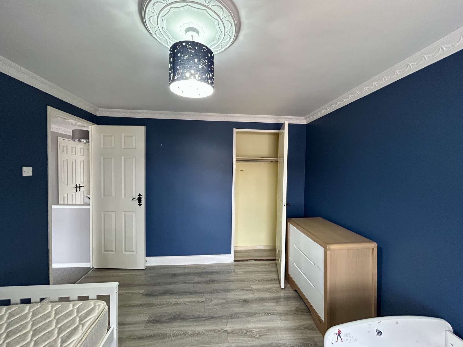 Tiled Flooring, cupboard, feature cornice ceiling