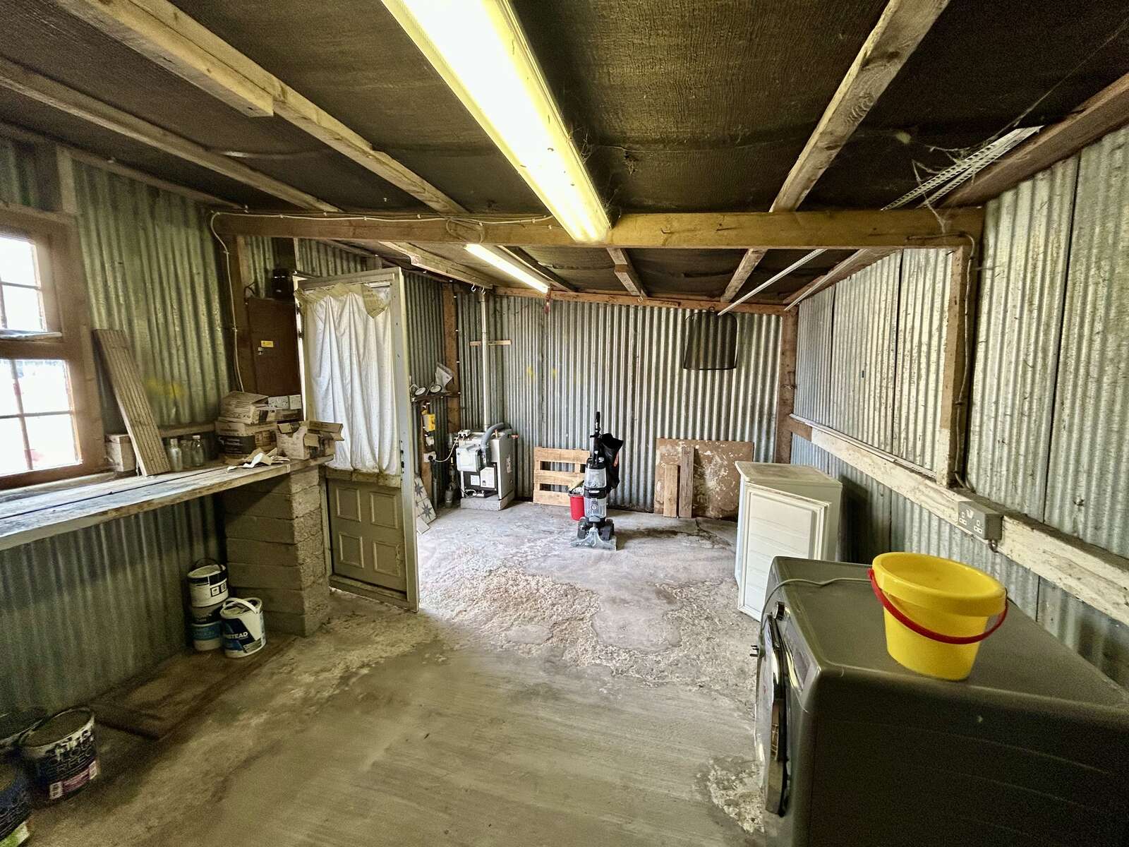 - Large Garage with roller door and secondary side door for access with electric