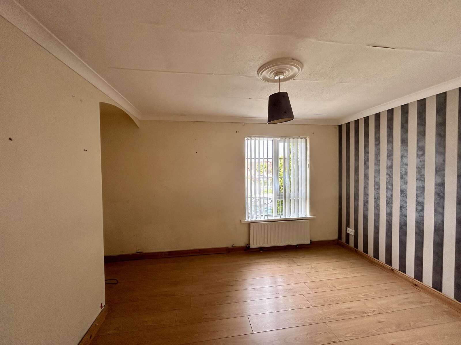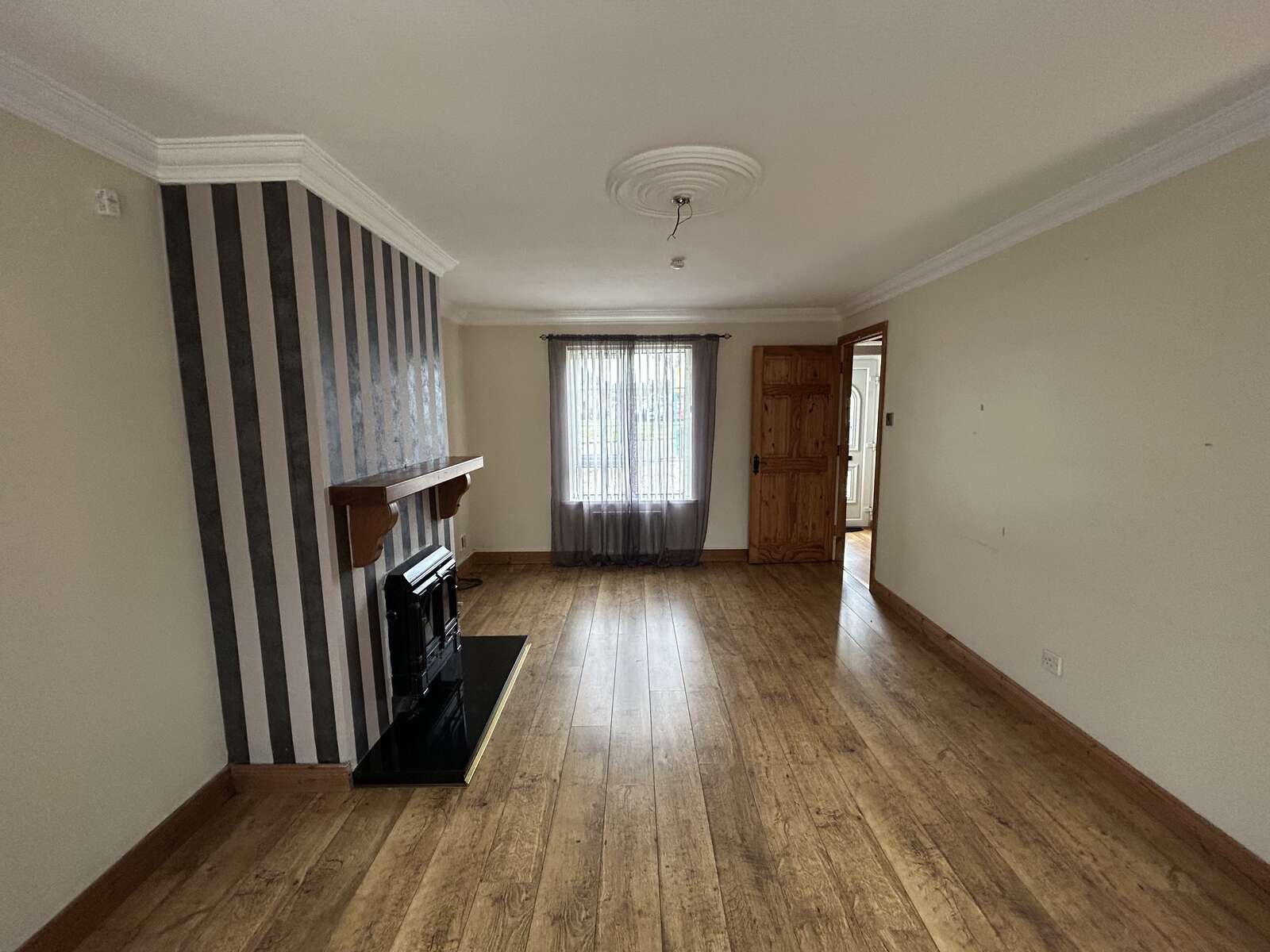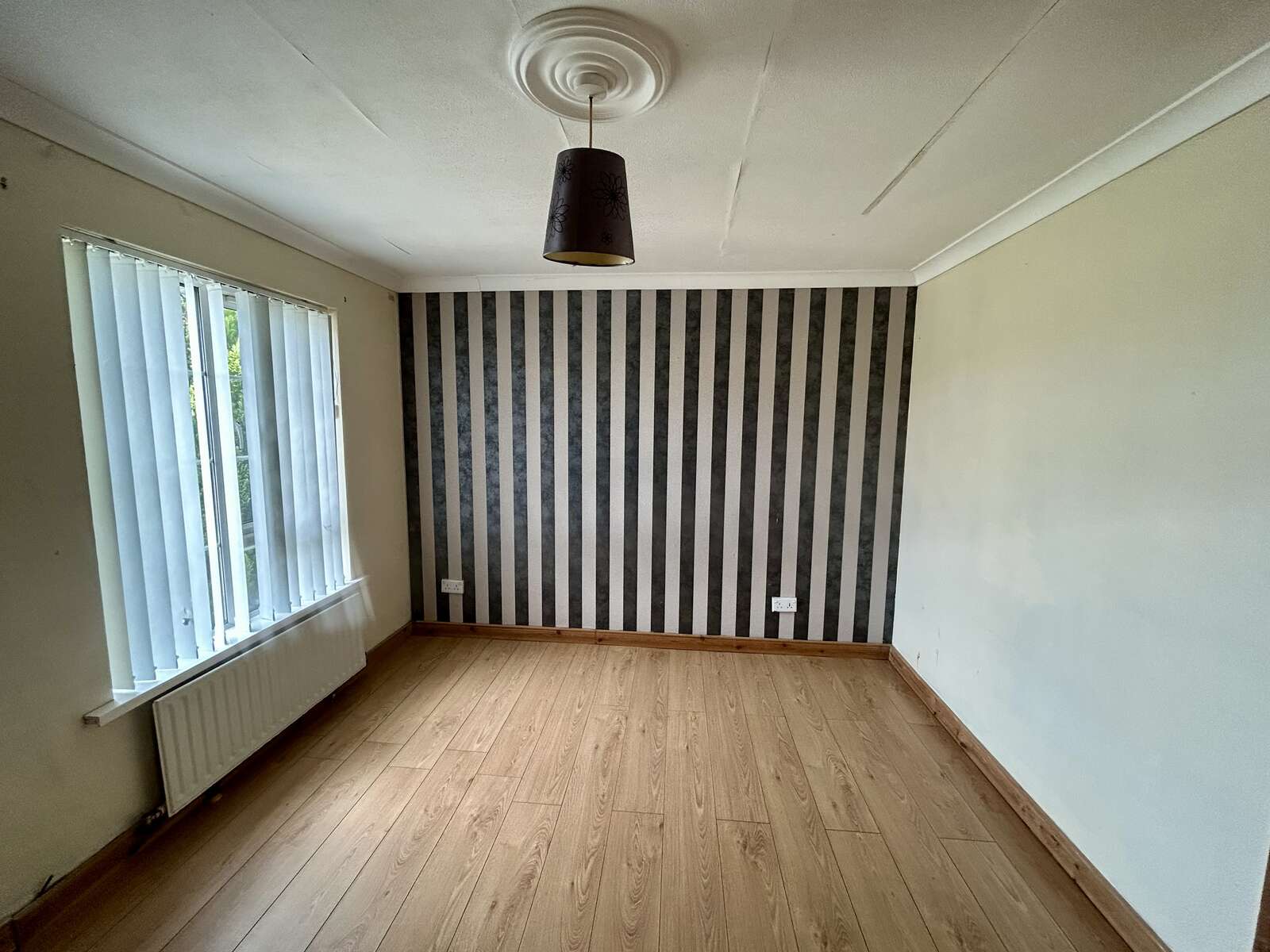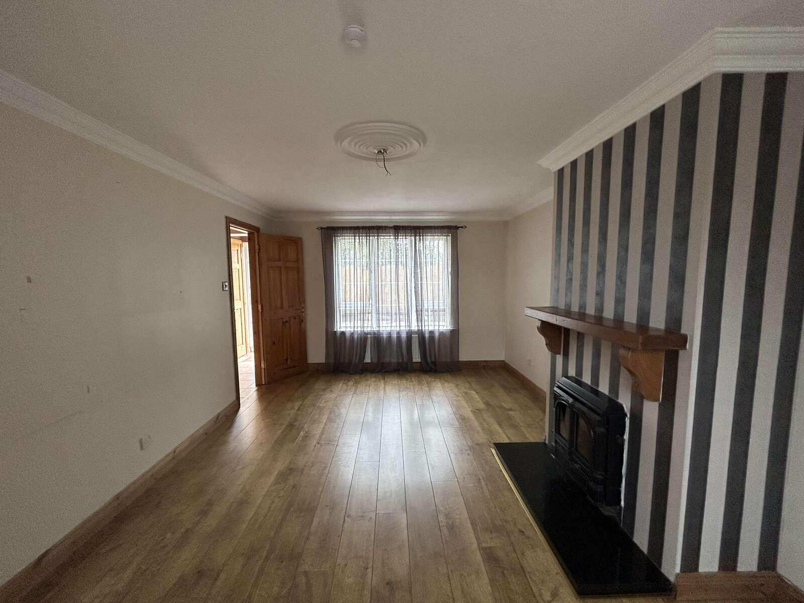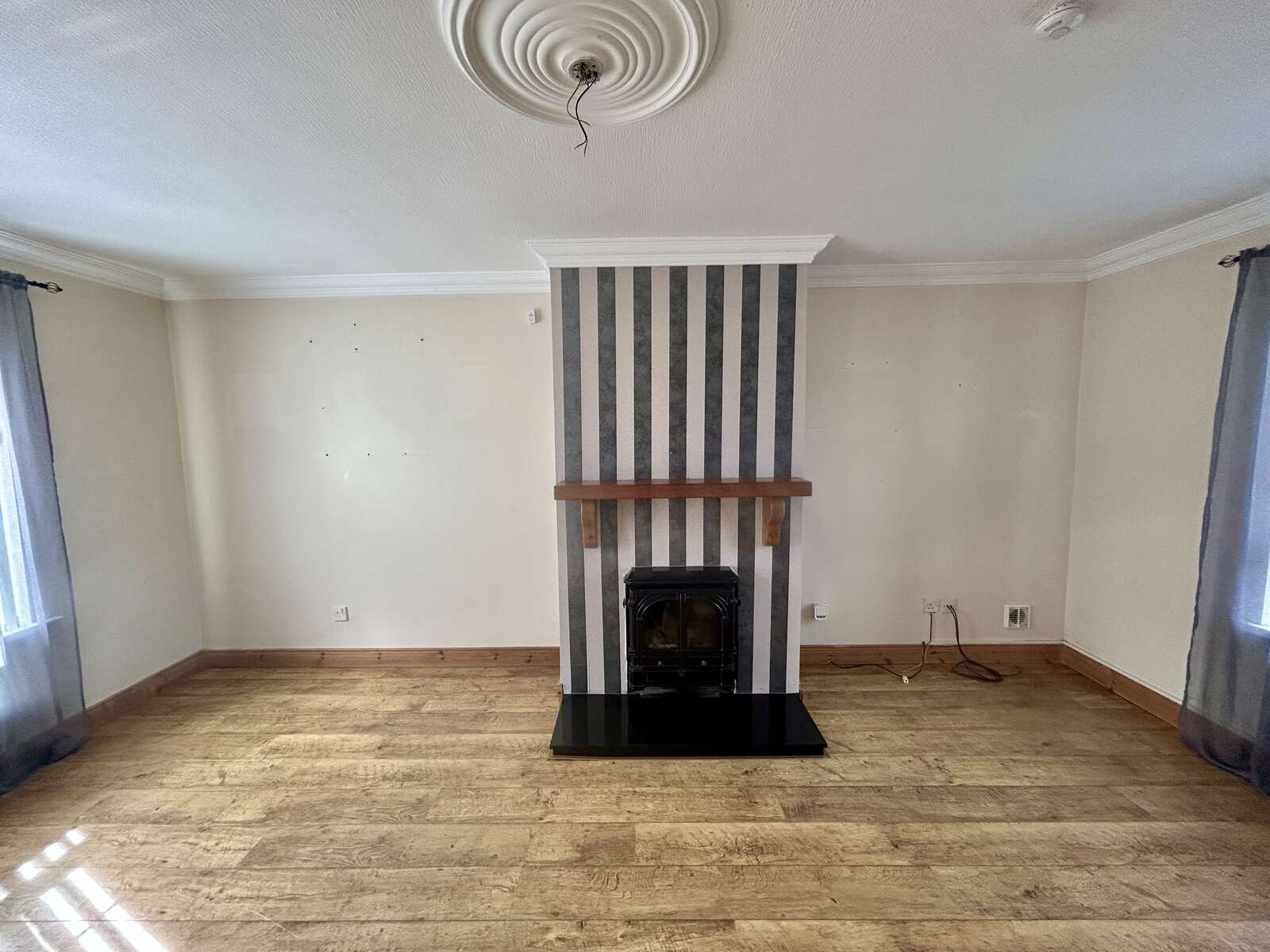 Double aspect windows, laminate flooring, fireplace