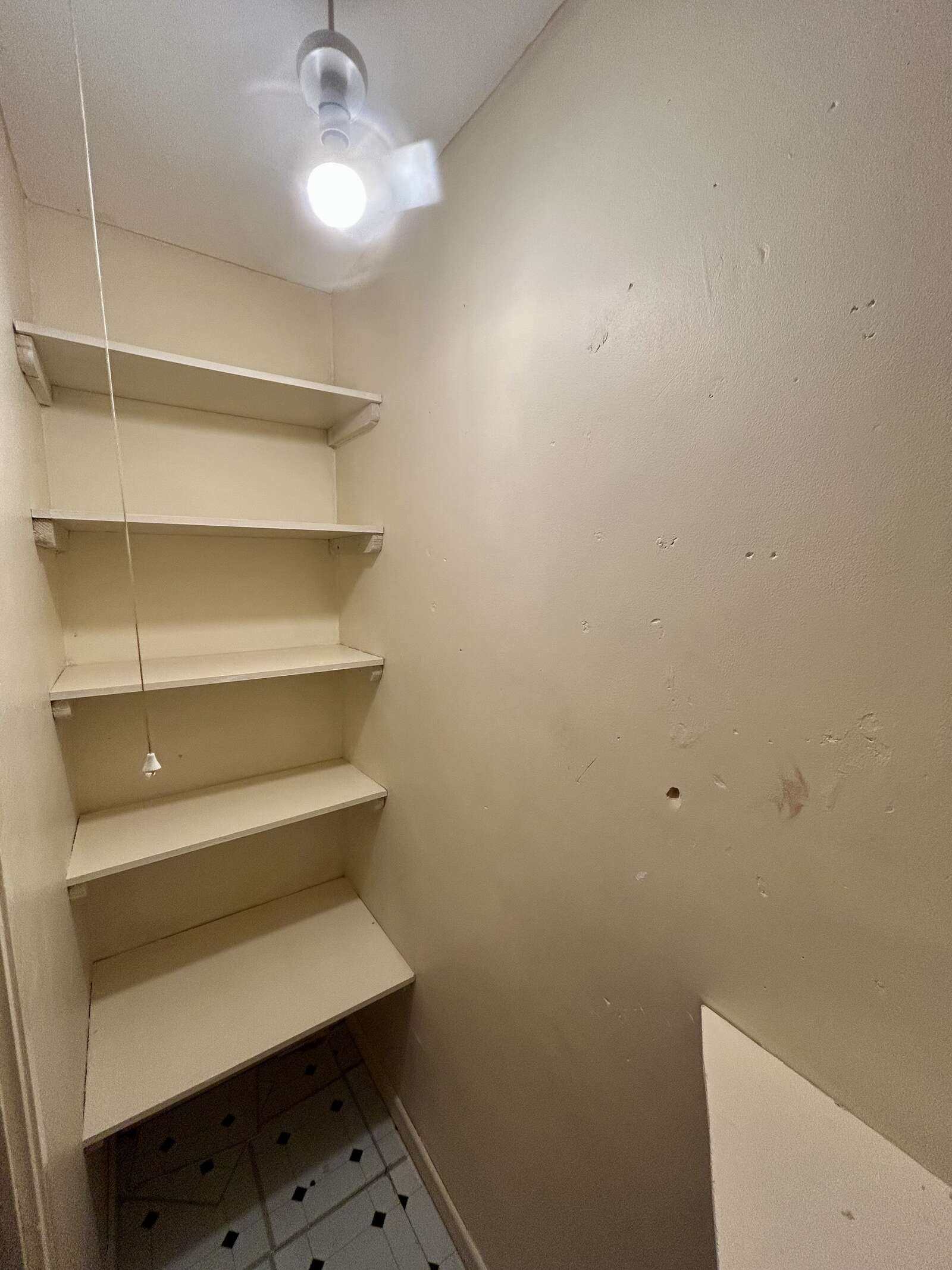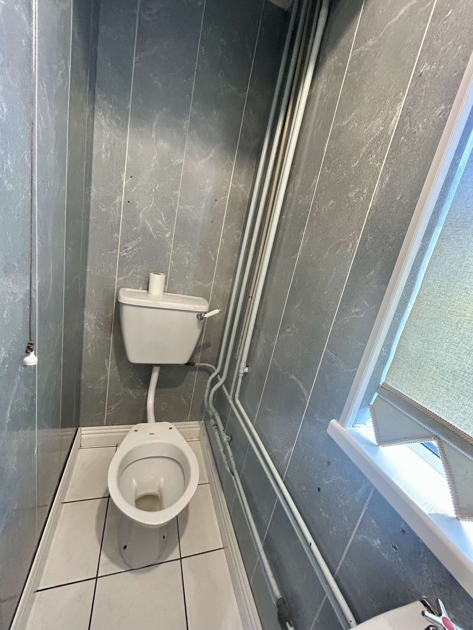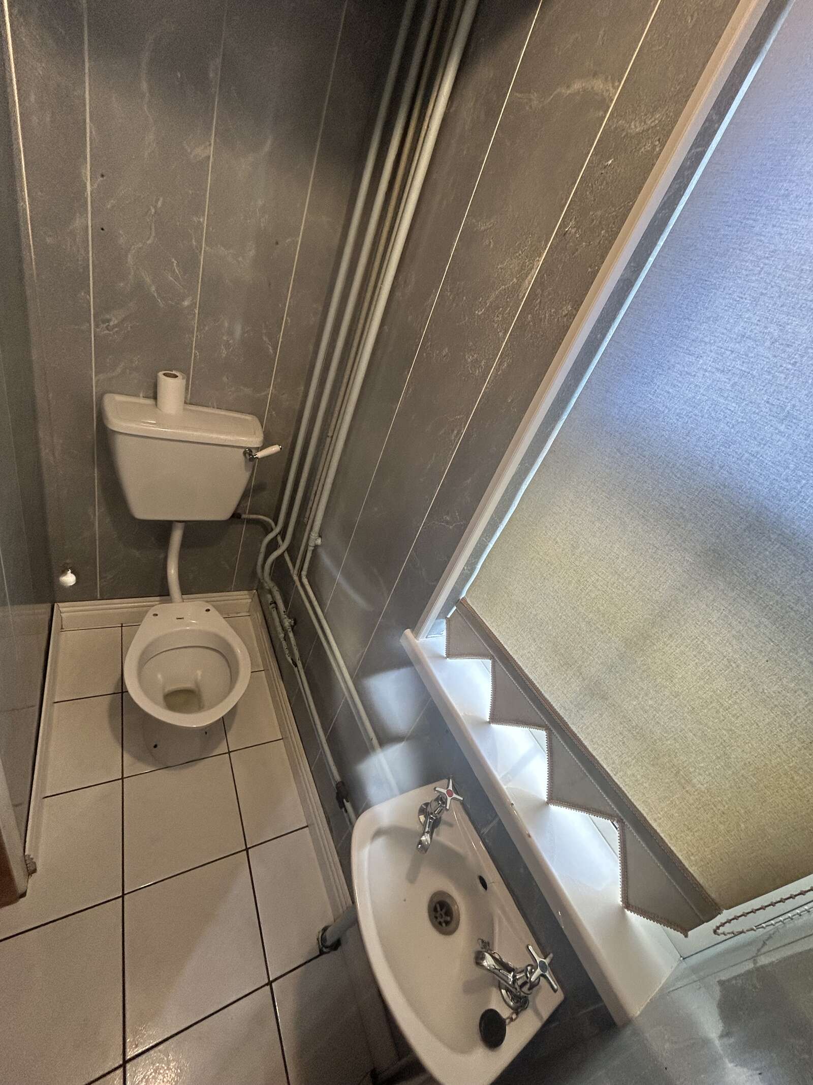 Wash hand basin, W.C, large storage cupboard