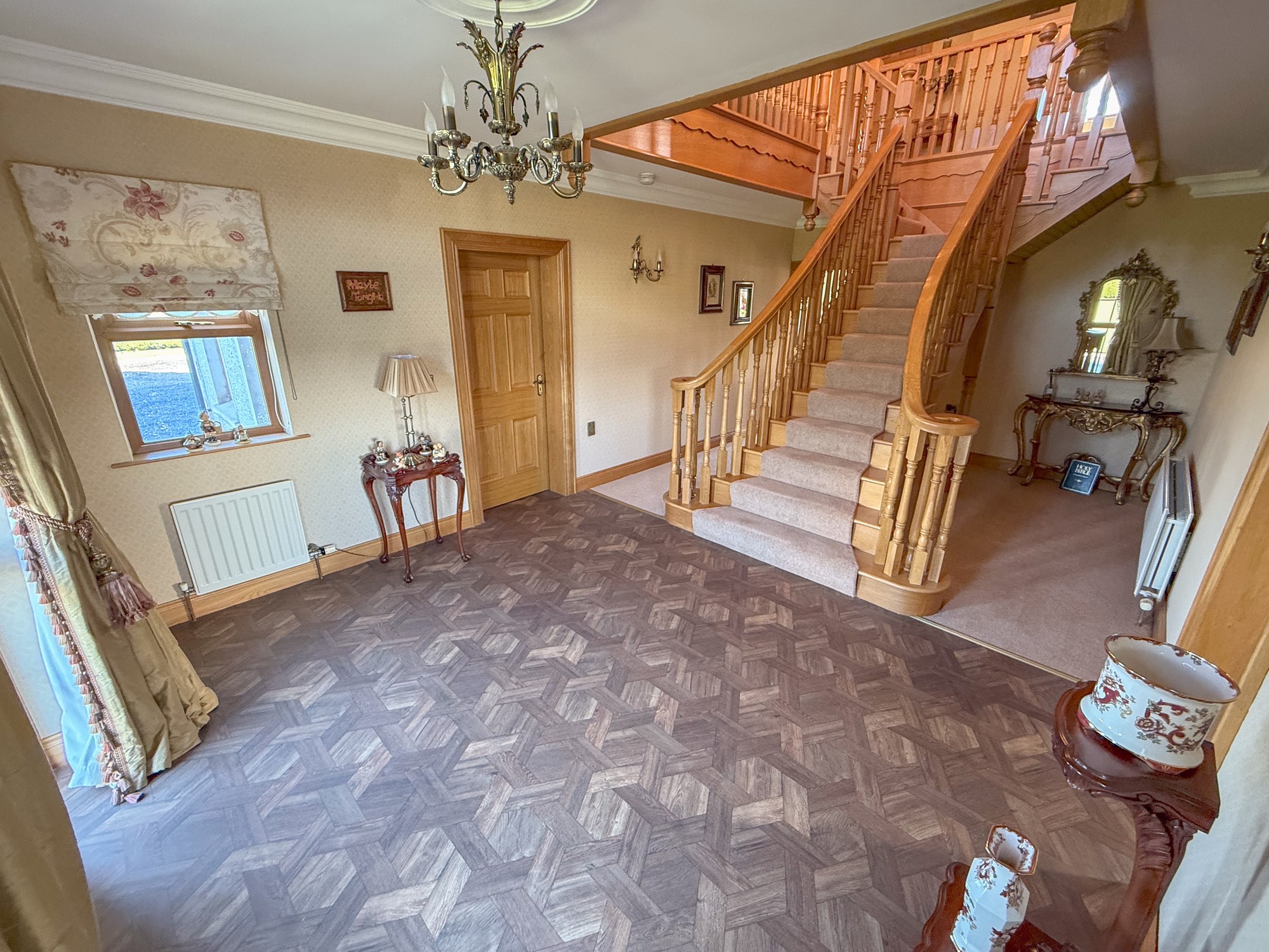 Entrance Hall 18’7” x 11’9” – Oak sweeping staircase with ornte strings and balustrading. Understairs storage