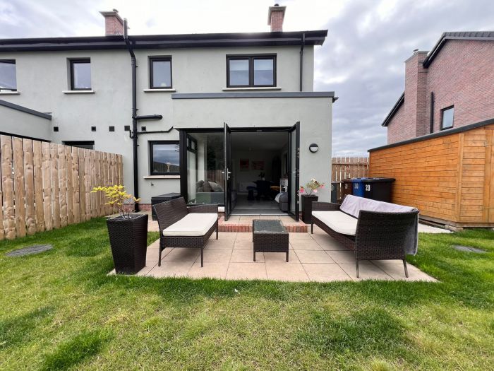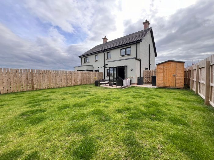 Spacious gardens to the front and rear of house laid in lawn with patio paved area to the rear. Fully enclosed with wood fence to rear. Outdoor tap.