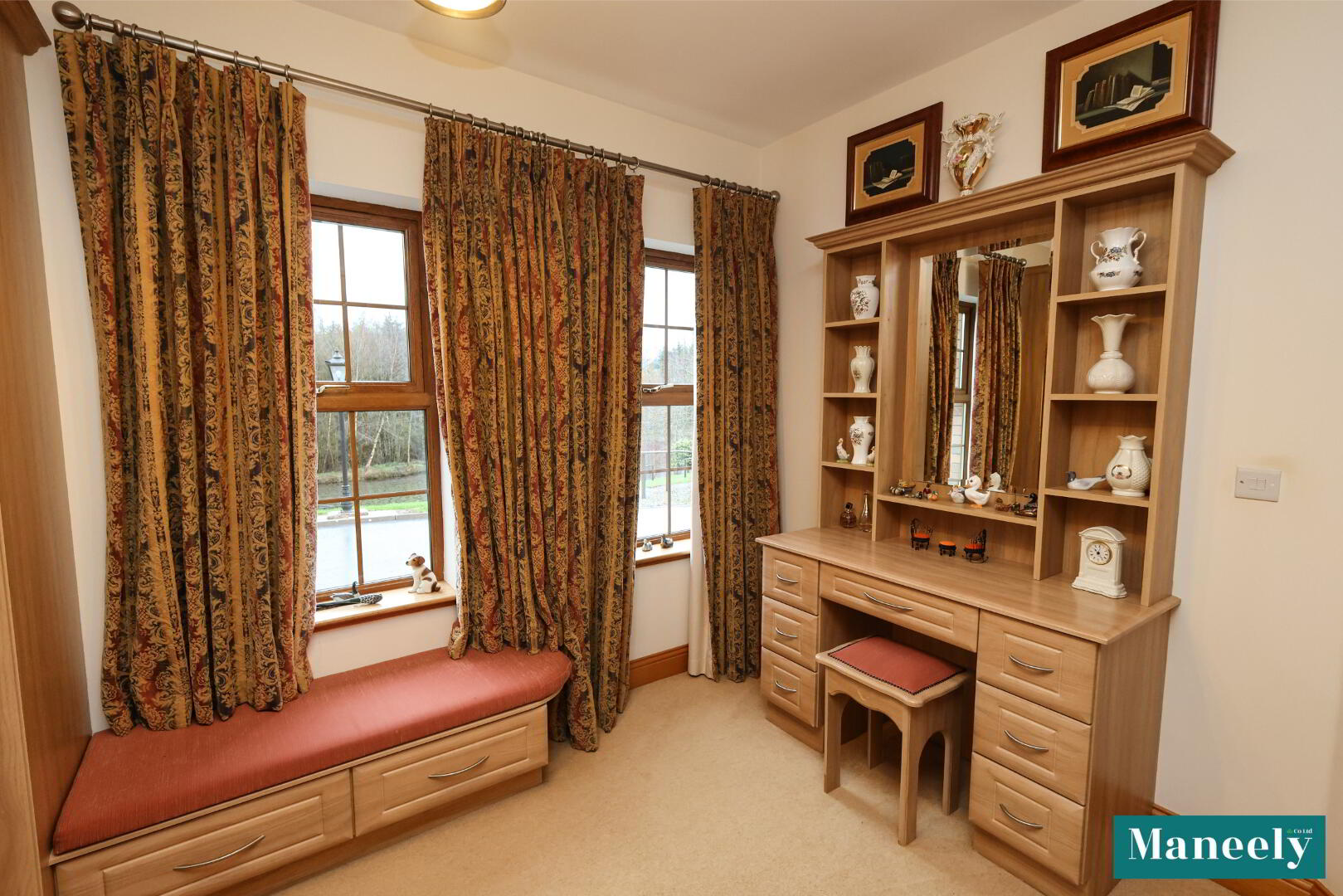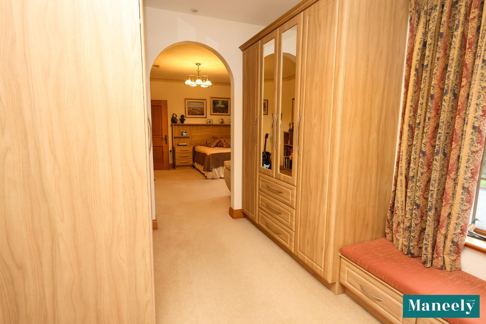 Extensive built-in wardrobes, dressing table, storage units and recessed spot lighting.