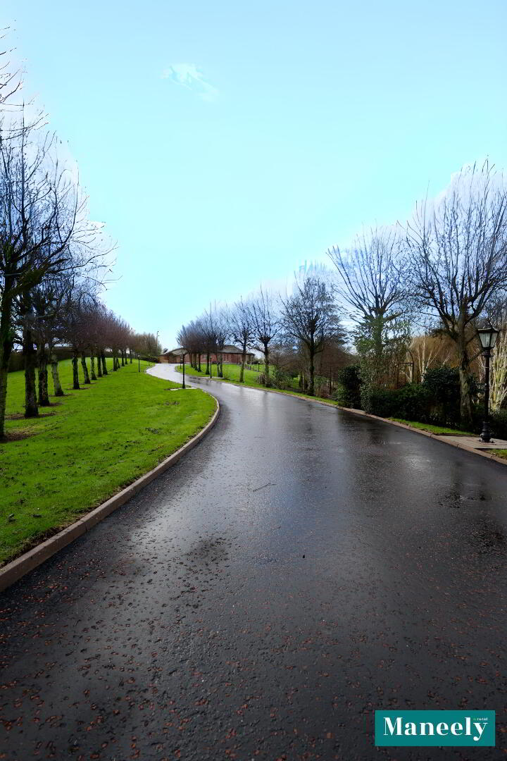 - Tree-lined sweeping driveway with Victorian-style lampposts