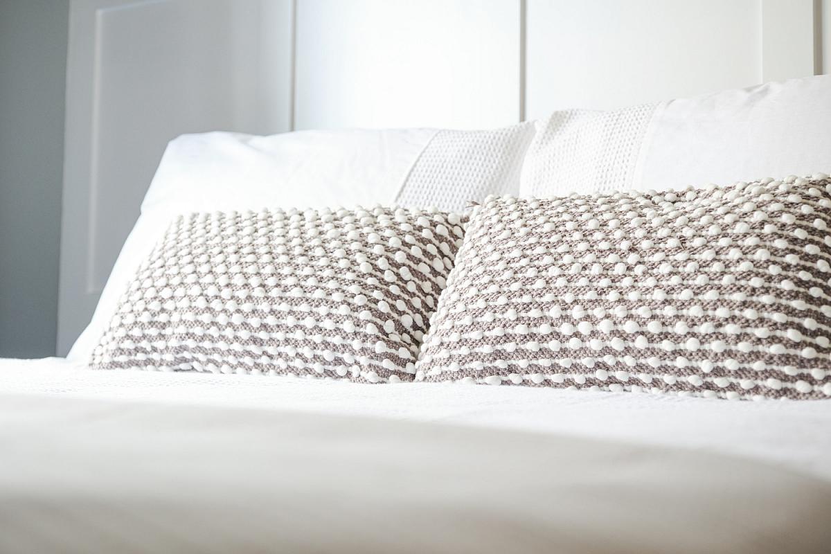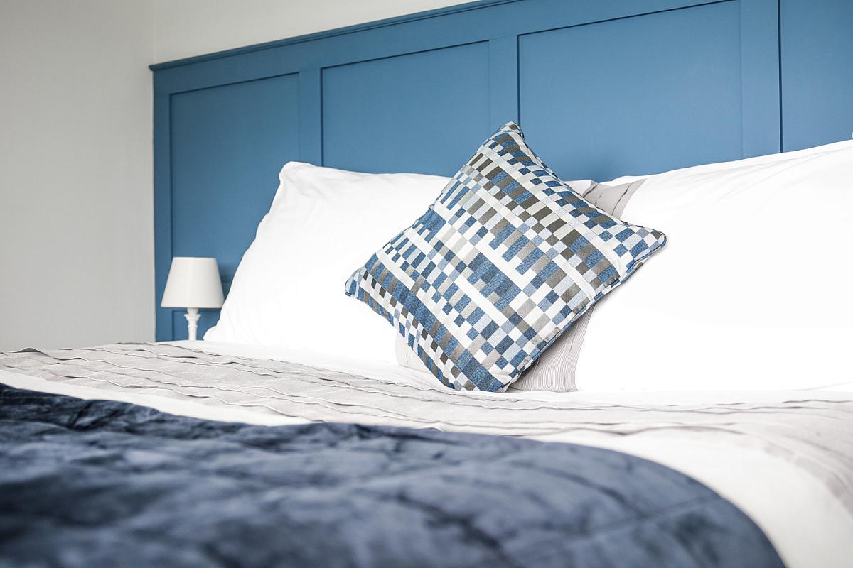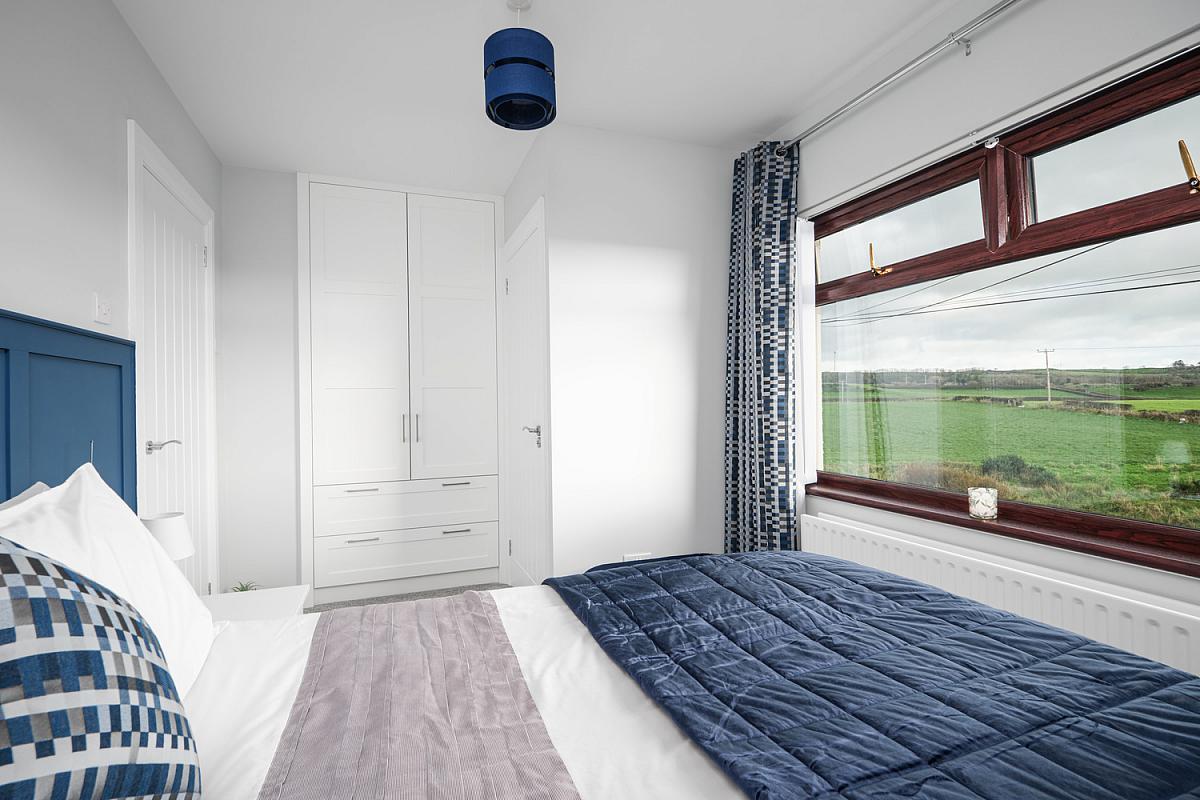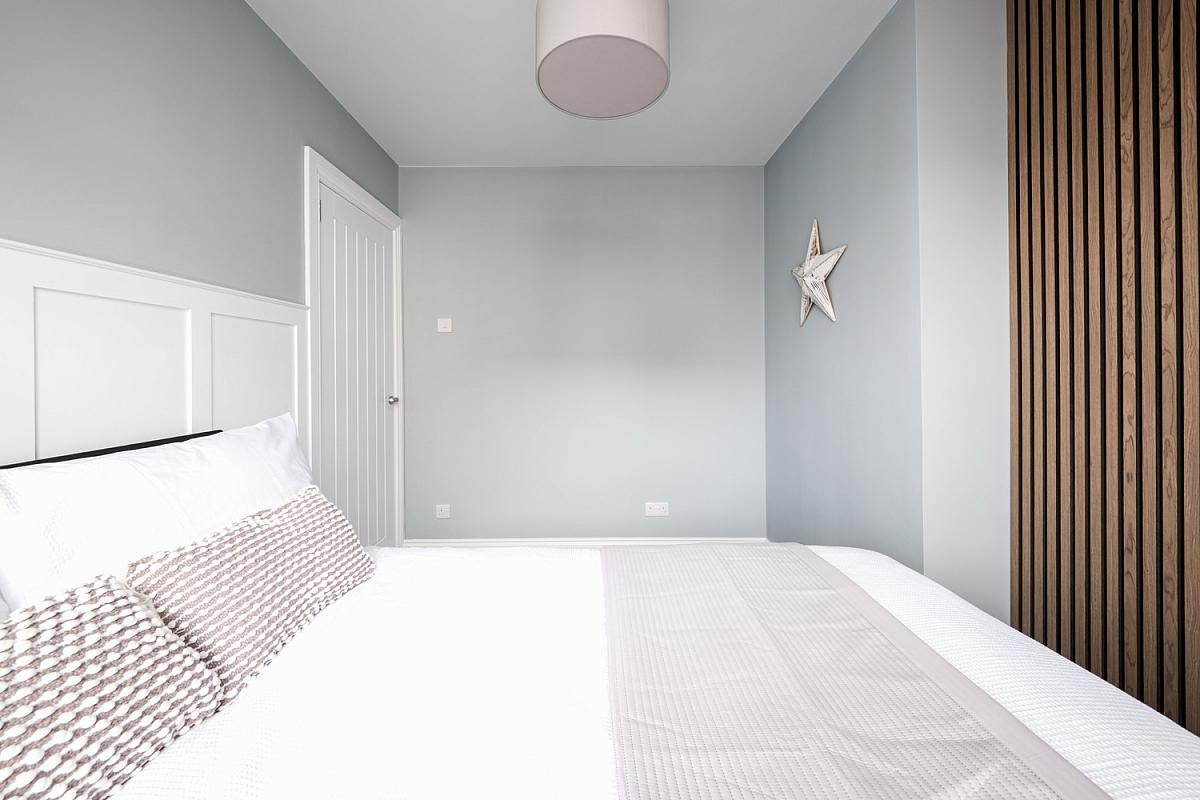With built in double wardrobes, drawers and part panel walls.