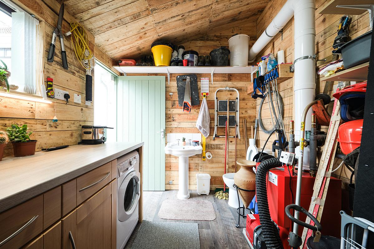With part wood panel wall.