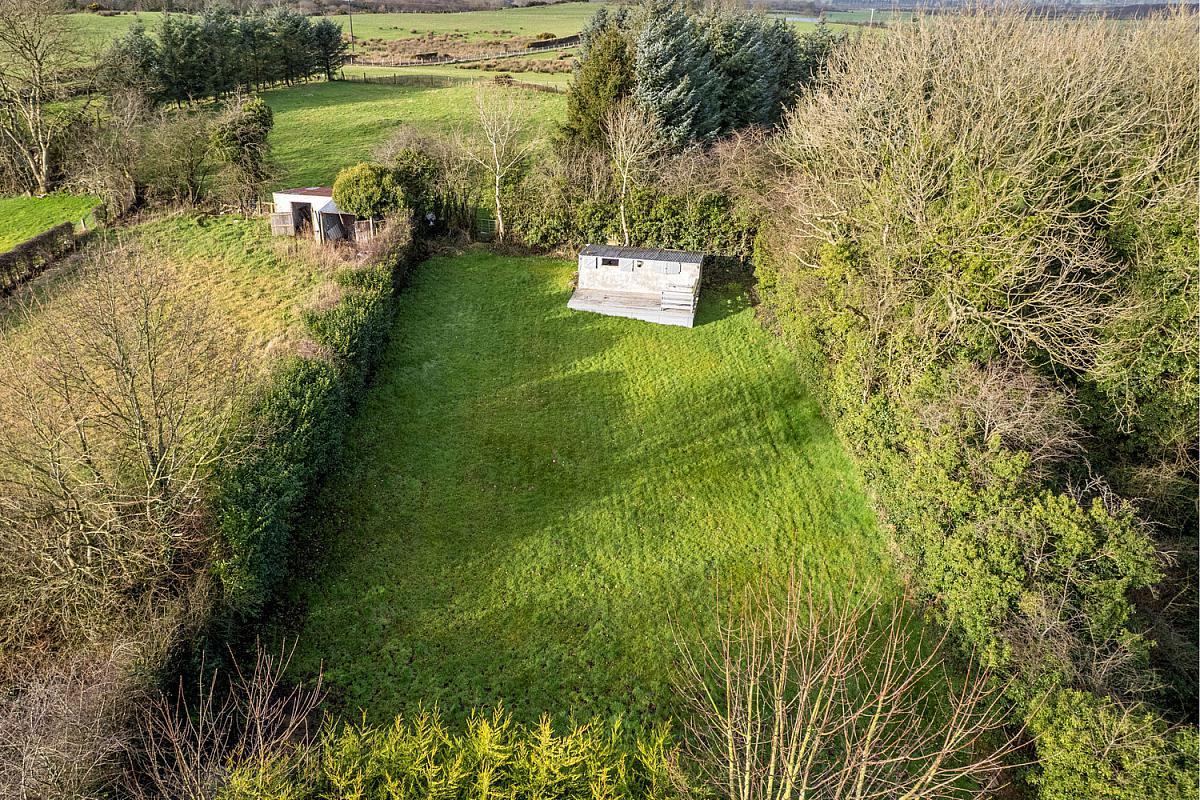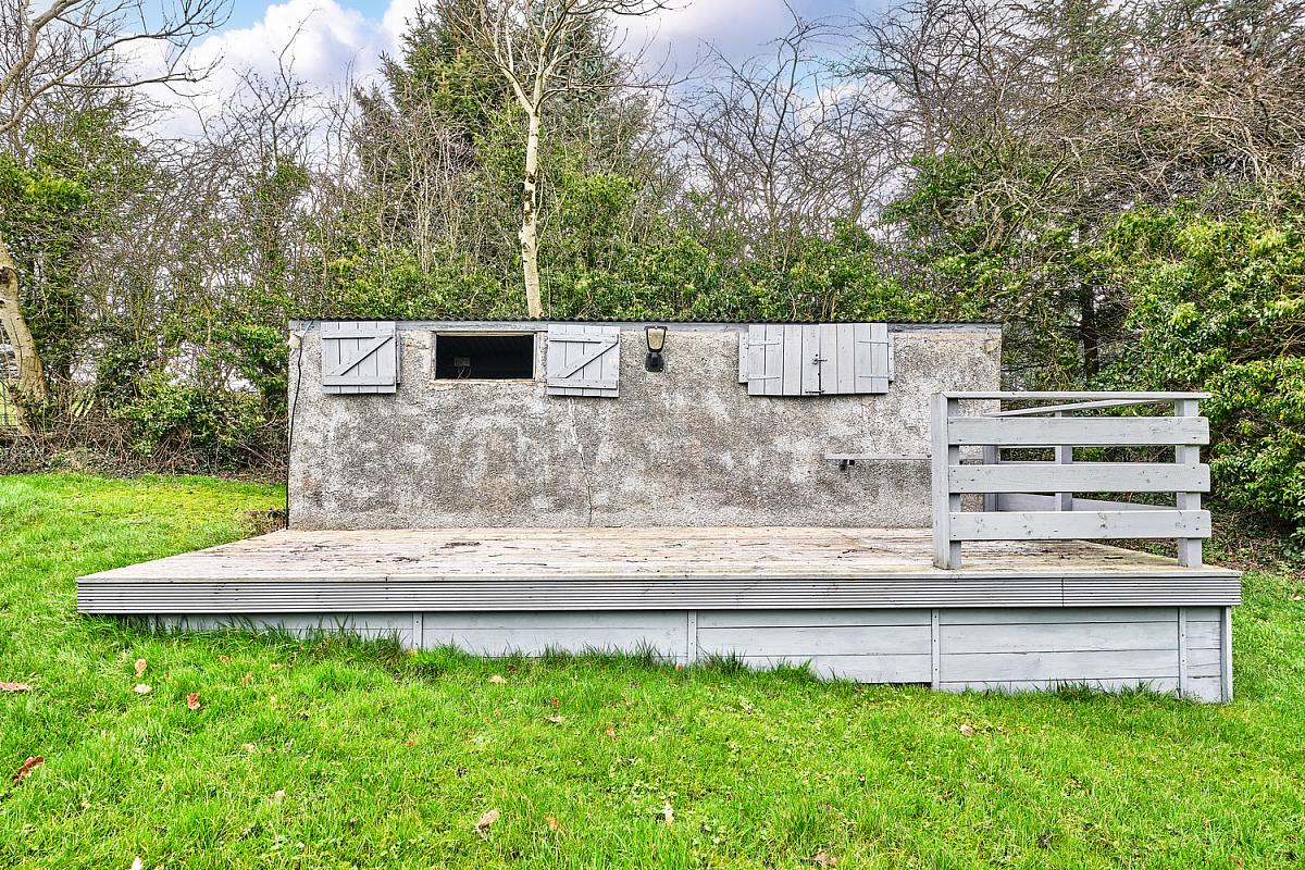 Garden to front, rear and side is fully enclosed. Extensive tarmac driveway leading to large detached shed with vehicle doors 201 x 1210 with light and power points. Additional summer house with wood burner, low level units, wood panelled walls, laminate wood floor and wood sheeted ceiling with recessed lighting. Separate w.c. with wash hand basin and wood panelled walls. Additional room 1411 x 61 with sink set in work top with low level unit below and shelving, wood sheeted walls, wood sheeted ceiling with recessed lights, laminate wood floor. Utility area 89 x 411 with plumbing for automatic washing machine, space for tumble dryer. Extra storage area for logs and coal. Small enclosed screened area to side. Elevated garden laid in lawn and surrounded by hedging with established trees. Additional outbuilding to very rear of garden which was used as entertaining bar area but can also be used for storage. Lights to front and rear. Tap and external power points to side. Garde