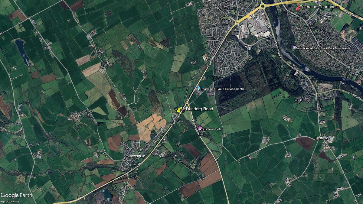 From the Greenmount roundabout leaving Coleraine on the Dunhill Road, go through the Drumcroon Road roundabout. No 72 will be the second property located on your right hand side. Take the turn off for Macosquin then turn right again for access.