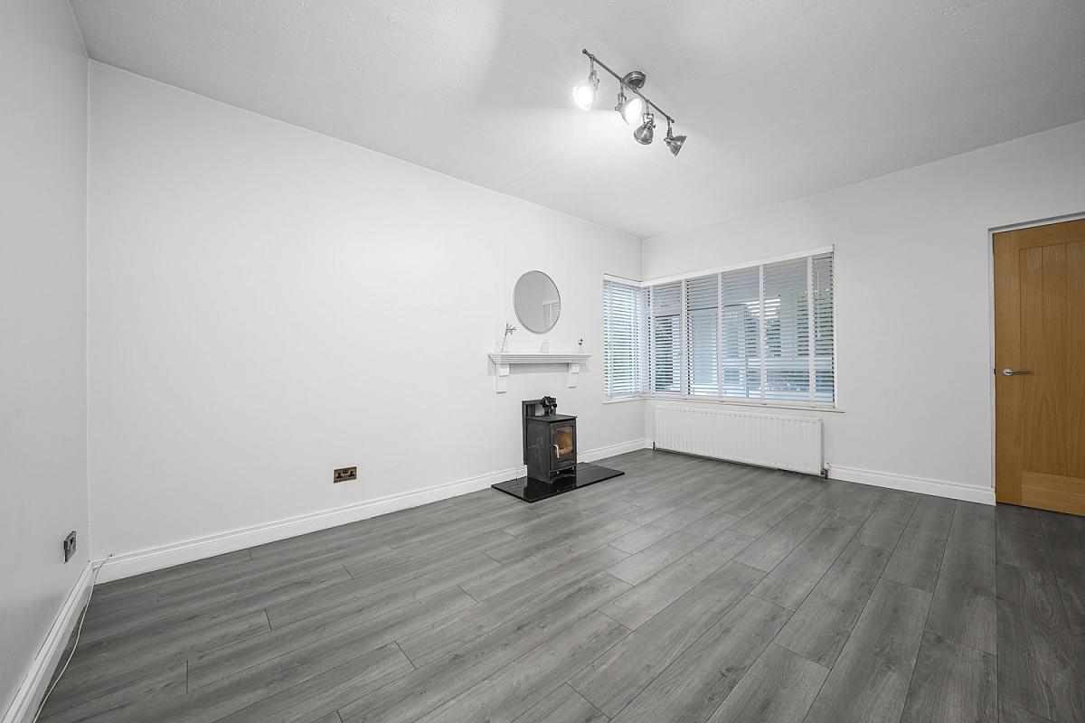 With wood mantle, recess for wood burner, granite hearth, wiring for wall lights, cornicing and laminate wood floor.