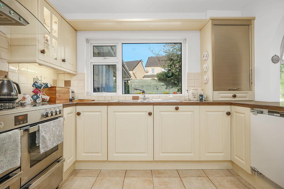 With low level built in units with drawers, tiling above, plumbed for automatic washing machine, boiler and tiled floor.