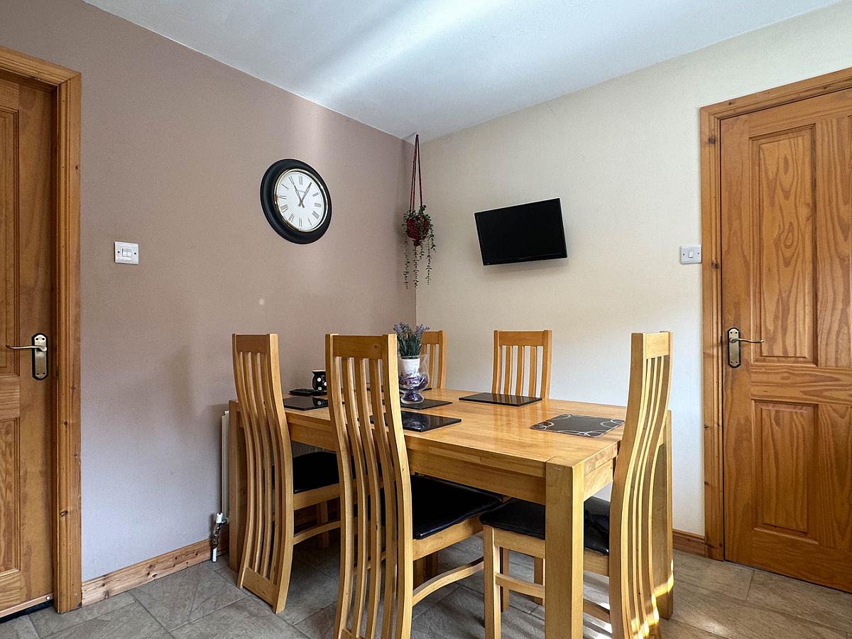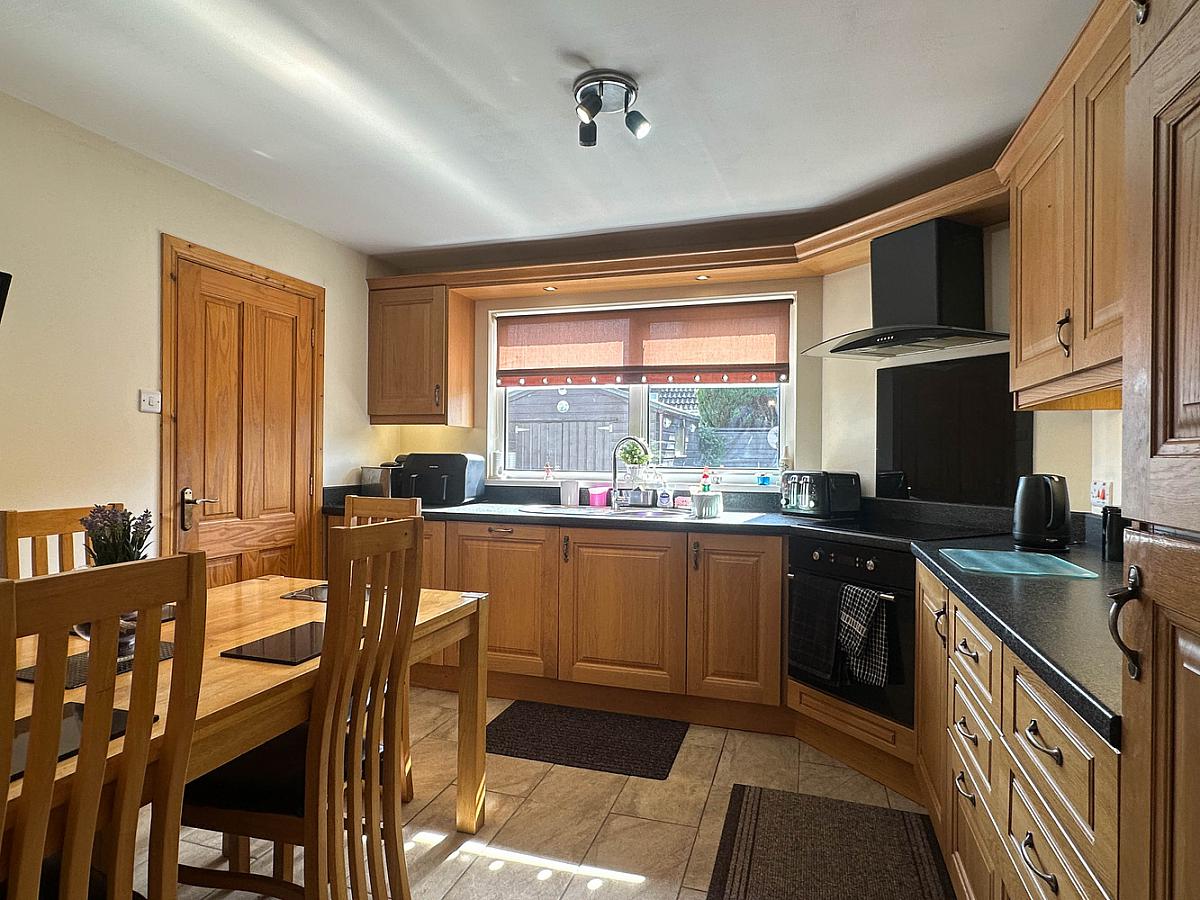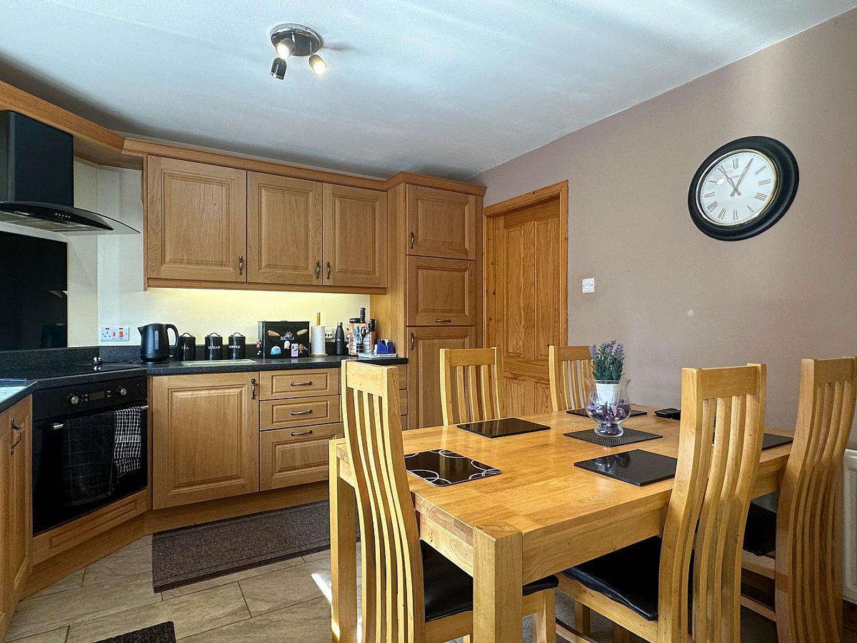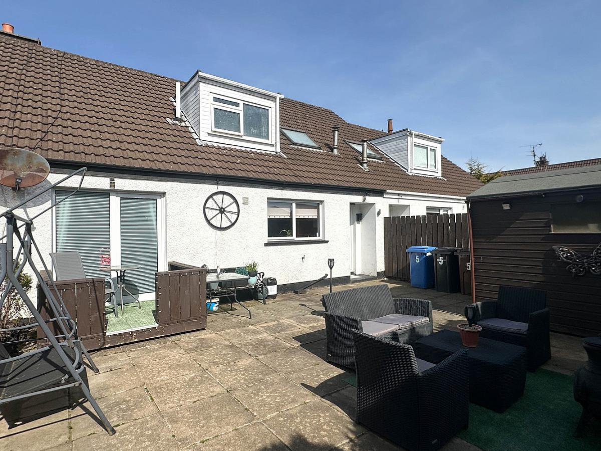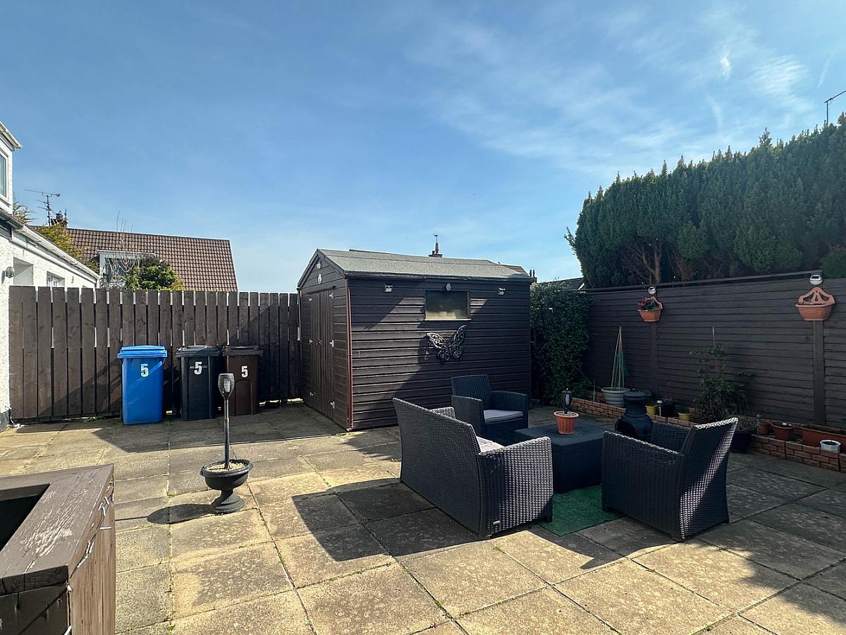 Garden laid in lawn to the front with screened bed. Concrete driveway. Spacious paved patio area to the rear enclosed by fencing with screened bed. PVC oil tank. Water tap to rear. Outside lights to front and rear. Small decking area outside the patio doors.