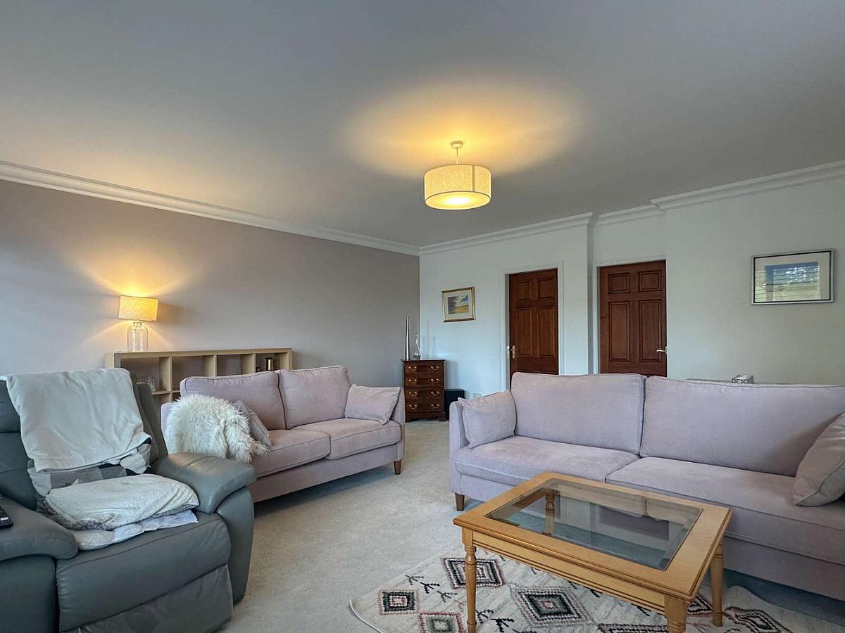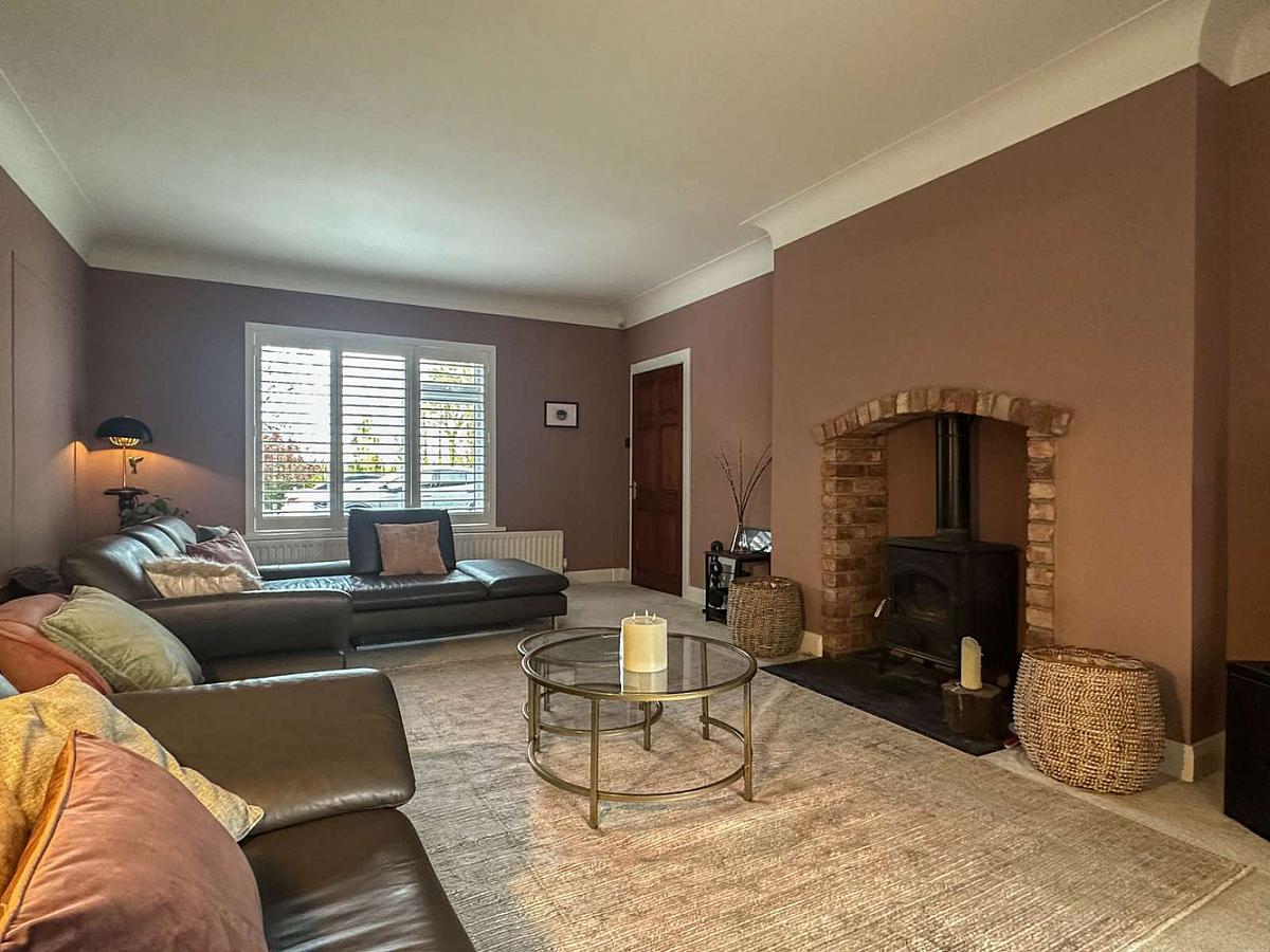 With feature multi fuel stove, brick surround and tiled hearth, coving and double glazed doors to sun room.