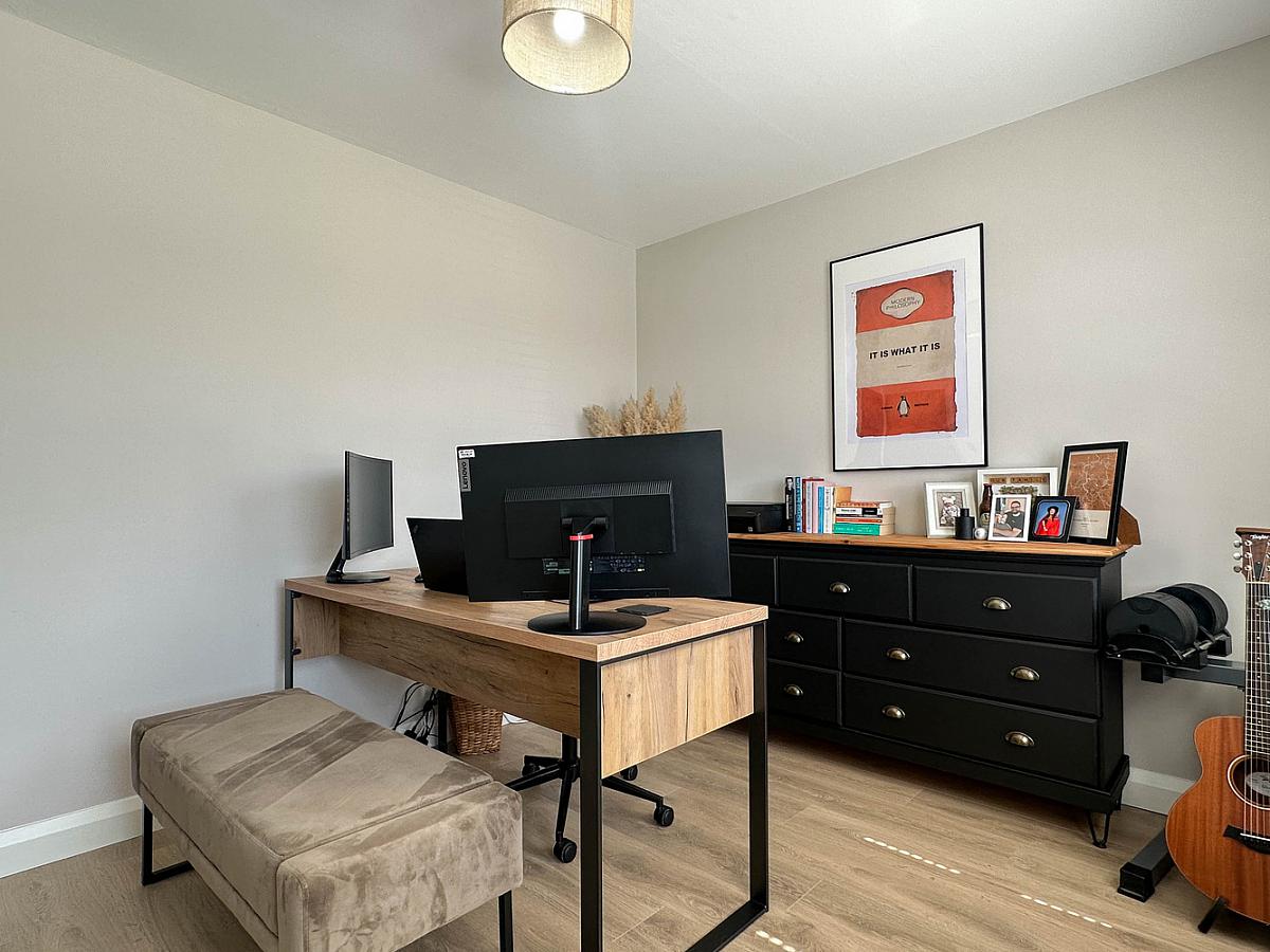 with wooden effect flooring, built in wardrobe.