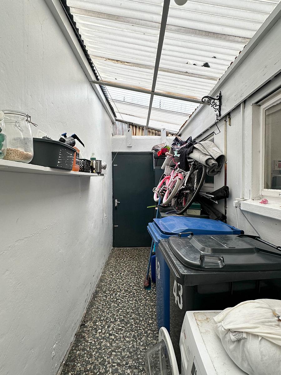 Small yard to rear covered by Perspex ceiling, with pedestrian gate to rear laneway. Metal oil tank. Boiler. Plumbed for washing machine.