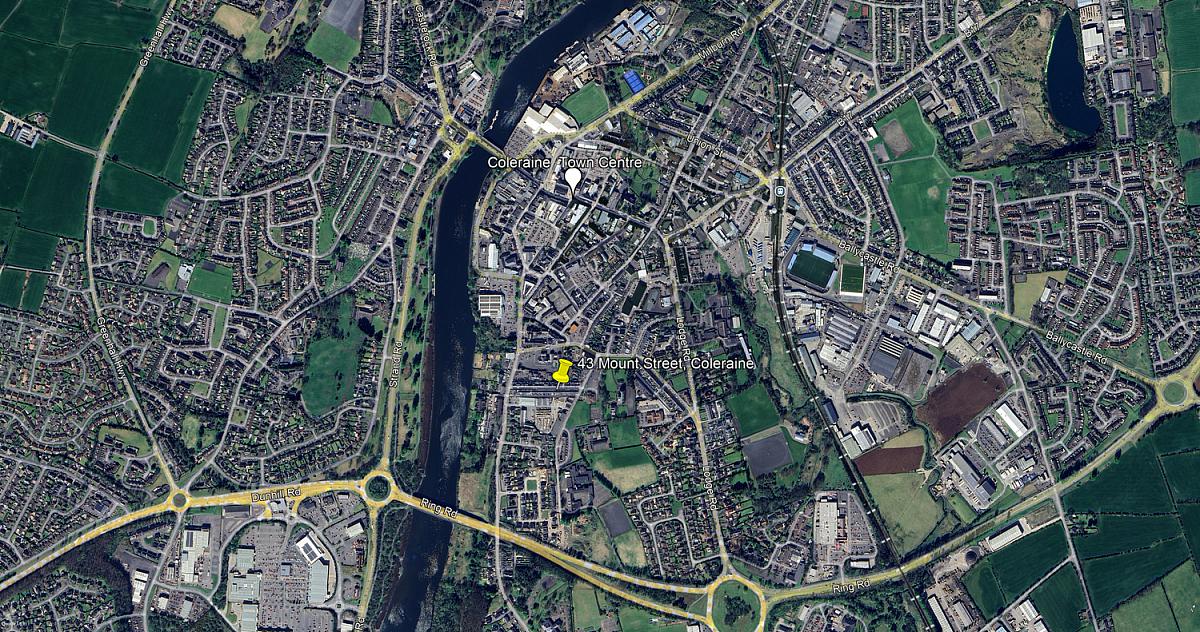 On approaching Coleraine town centre along the Mountsandel Road, Mount Street is the last turning on the right and Number 43 is situated on the right hand side.
