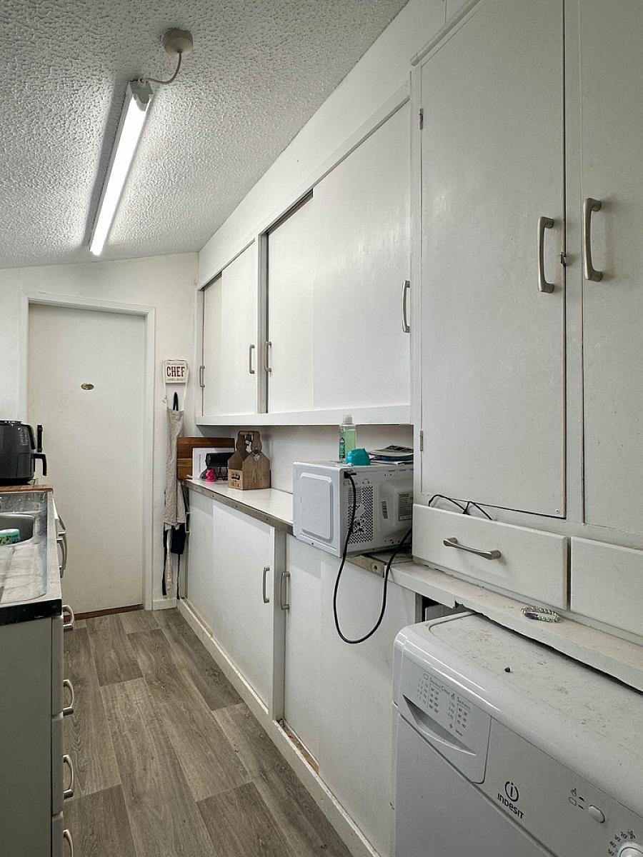 With built in storage cupboard. No radiator.