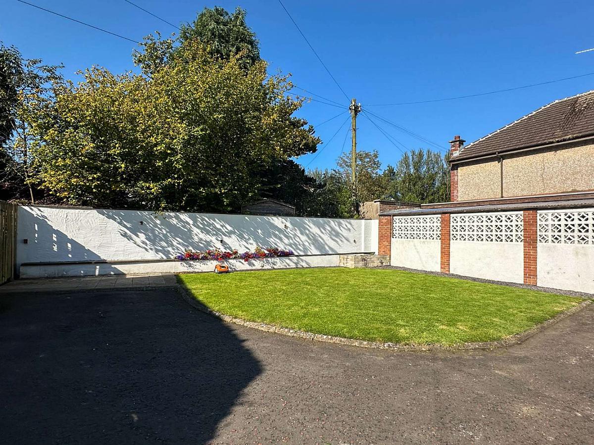 Garden laid in lawn to the front with mature trees, enclosed by small wall and pillars with vehicular gates. Paved path to the front with low level lighting. Paved area to the side of the property with boiler. Garden laid in lawn to the rear with raised flower bed, enclosed by wall. Area to the rear of the garage housing PVC oil tank and suitable for waste bin storage. Paved area to the side of the garage. Extensive tarmac driveway and parking to the side and rear of the property. Outside lights to the front and side of the garage and recessed lighting in the soffit boards around the Sun Room.