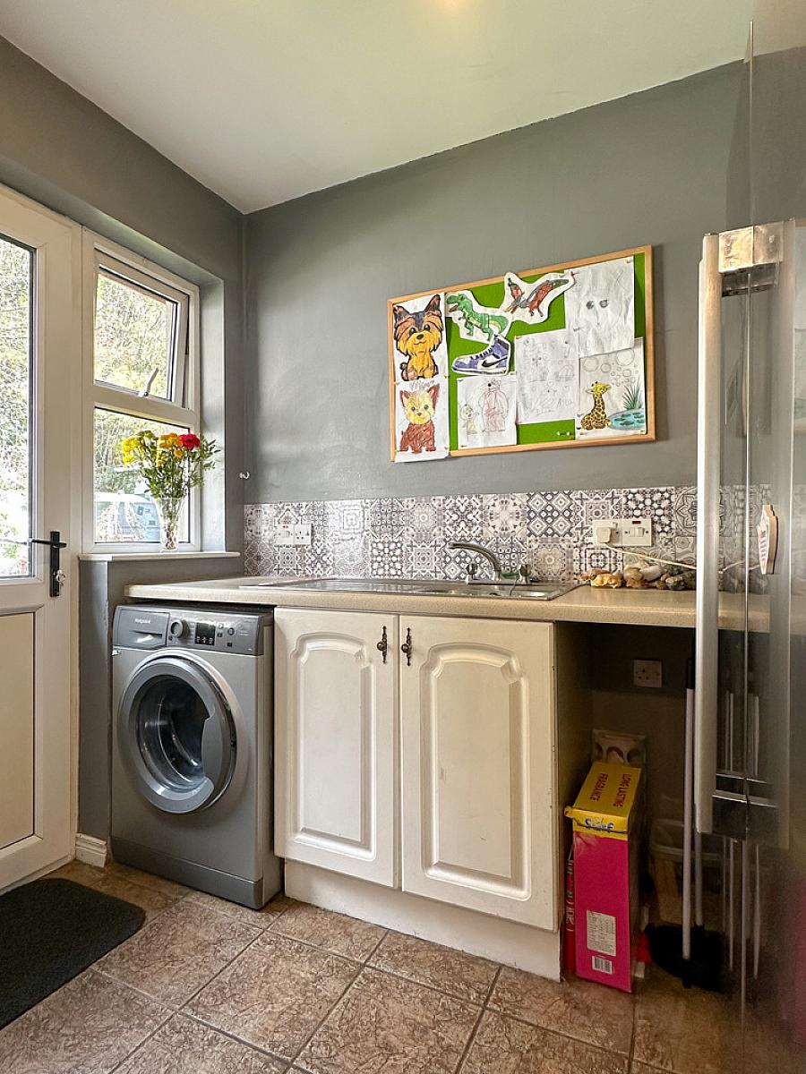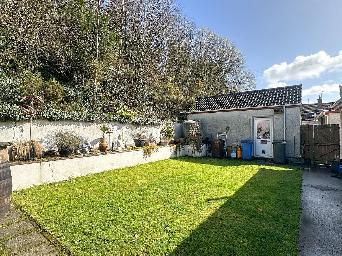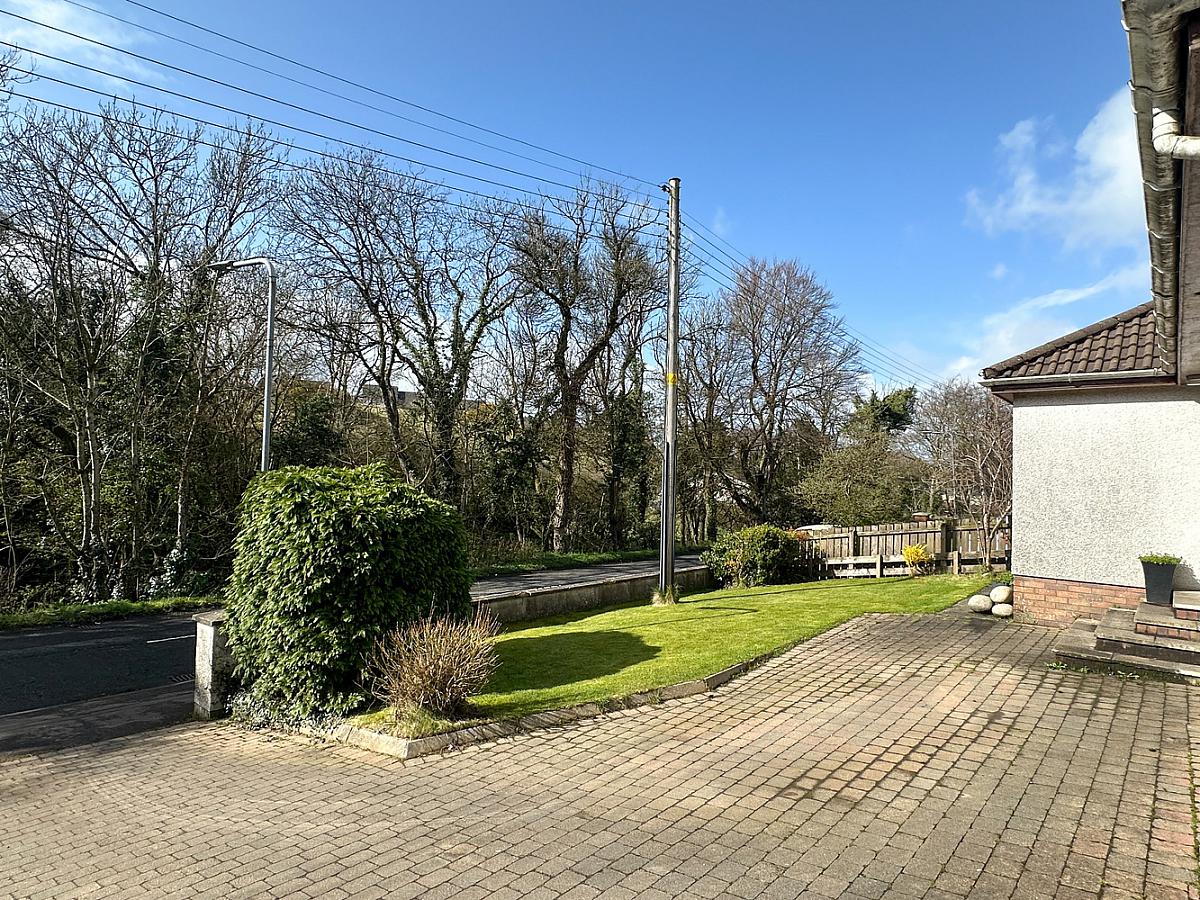 Paviour driveway and parking to the front and side. 4 steps leading up to the front door. Garden laid in lawn to the front with shrubs. Garden laid in lawn to the rear with patio area and raised bank, enclosed by wall with pedestrian gates to the sides. Outside light to the front, rear and over garage door. Water tap to the rear. PVC oil tank. PVC guttering.