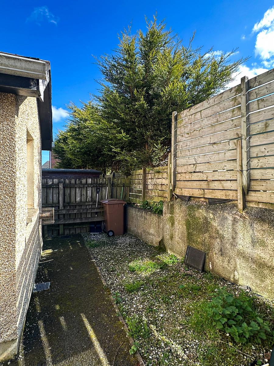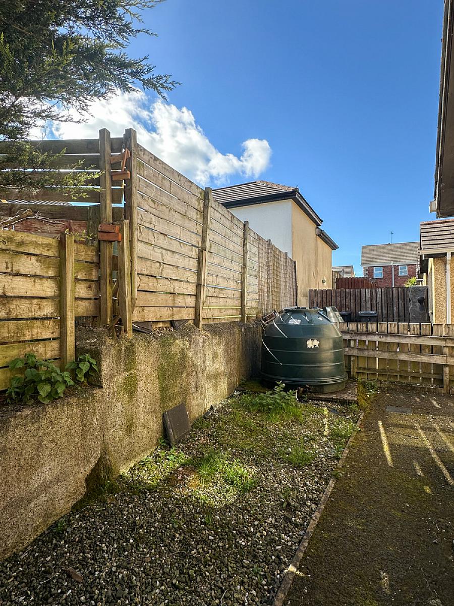 Tarmac parking space to the front. Tarmac path to the side with pedestrian gate. Outside light to front and side. PVC oil tank. PVC guttering. Small screened and tarmac area to the rear.