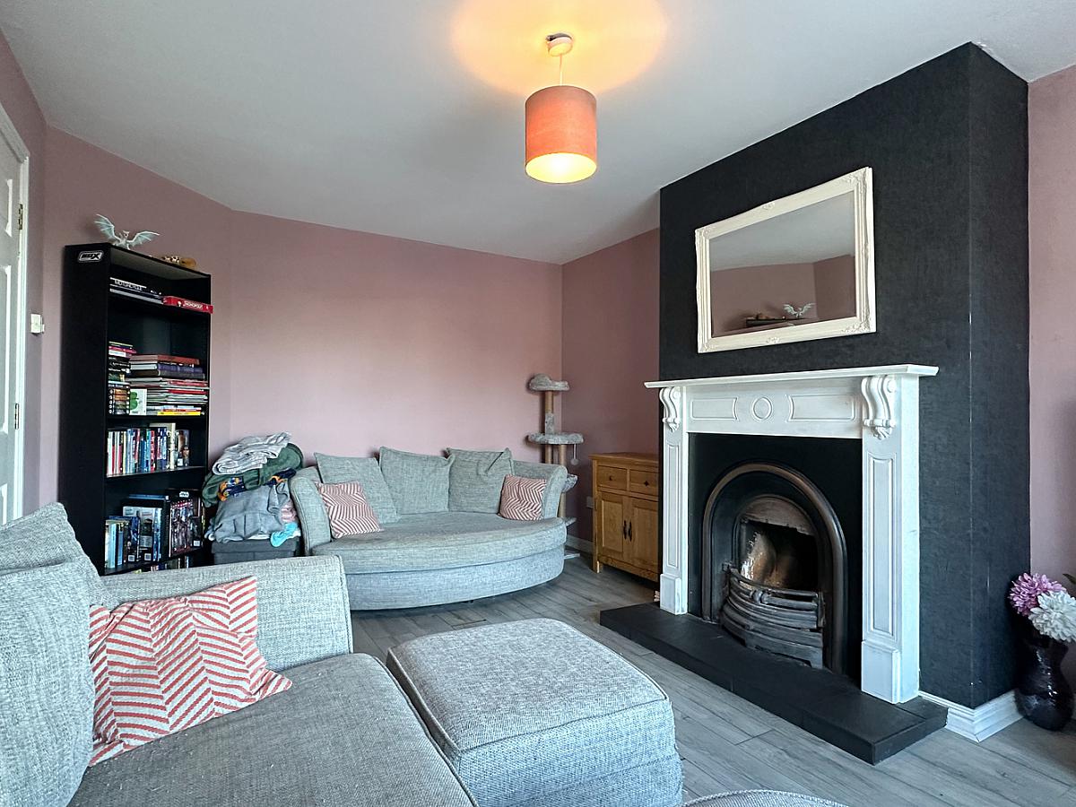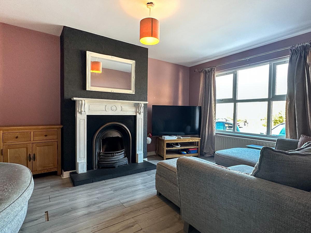 (Max) with wooden surround fireplace, cast iron inset and tiled hearth, wooden effect flooring.